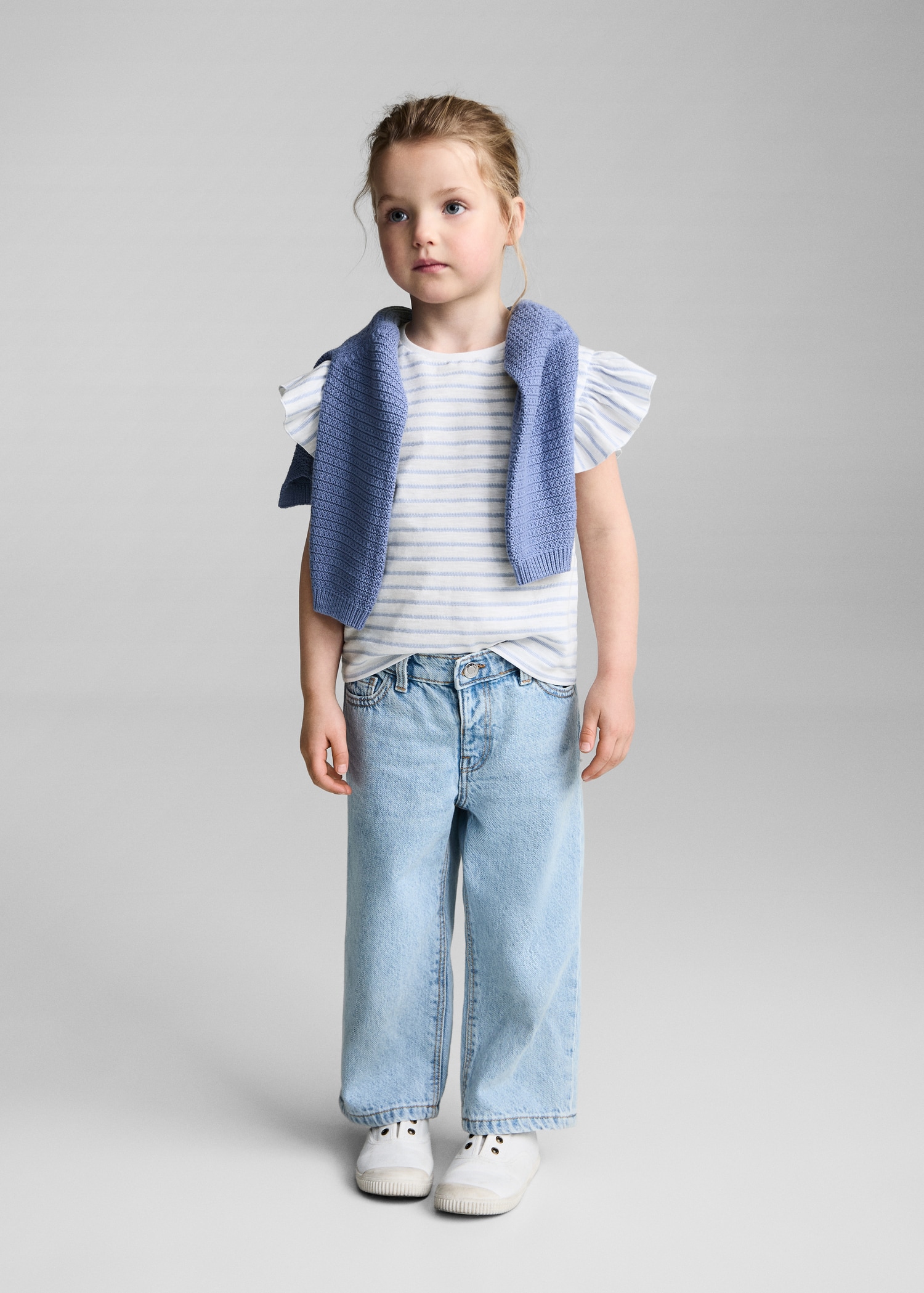 This delightful 100% cotton striped t-shirt is perfect for your little one’s wardrobe. Featuring a fun and playful design, it is crafted with a ribbed round neckline and charming ruffled short sleeves, making it both stylish and comfortable for all-day wear. Ideal for pairing with shorts or jeans, this t-shirt will keep your child looking adorable while they play and explore.