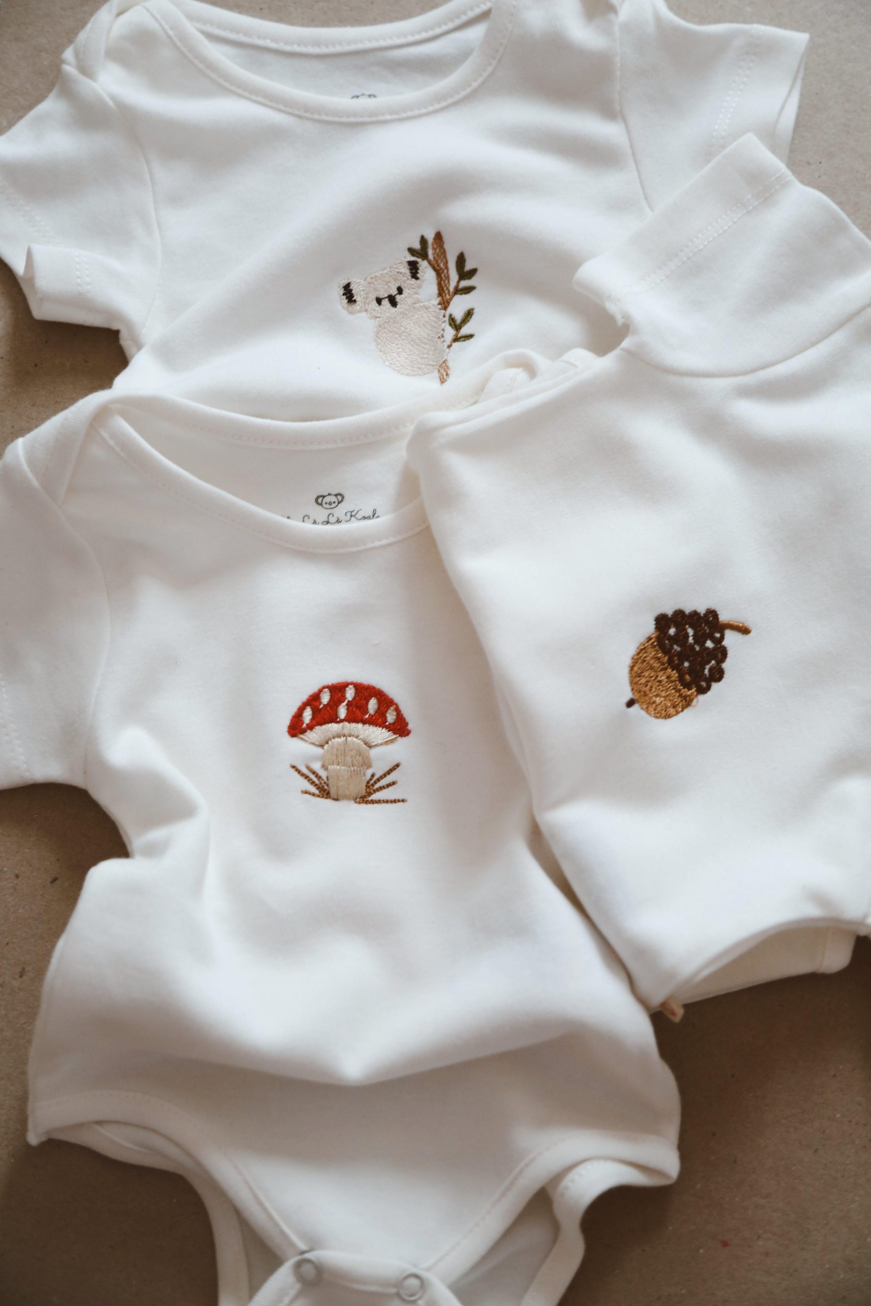Discover our delightful 3-piece embroidered snap bodysuit set, crafted from 100% soft cotton to ensure your little one’s comfort. Each bodysuit features charming embroidery with a backing that protects sensitive baby skin. Designed for a perfect fit, this set includes three adorable designs: Mushroom, Acorn, and Koala. Ideal for mix-and-match outfits, these bodysuits are perfect for any occasion. Easy to care for, simply machine wash at 30 degrees for lasting quality. Suitable for all little explorers, this unisex collection is a must-have for every baby wardrobe!