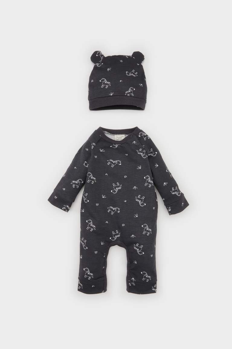 Baby Boy Newborn 2-Piece Set with Zebra Print Long Sleeve Bodysuit and Hat