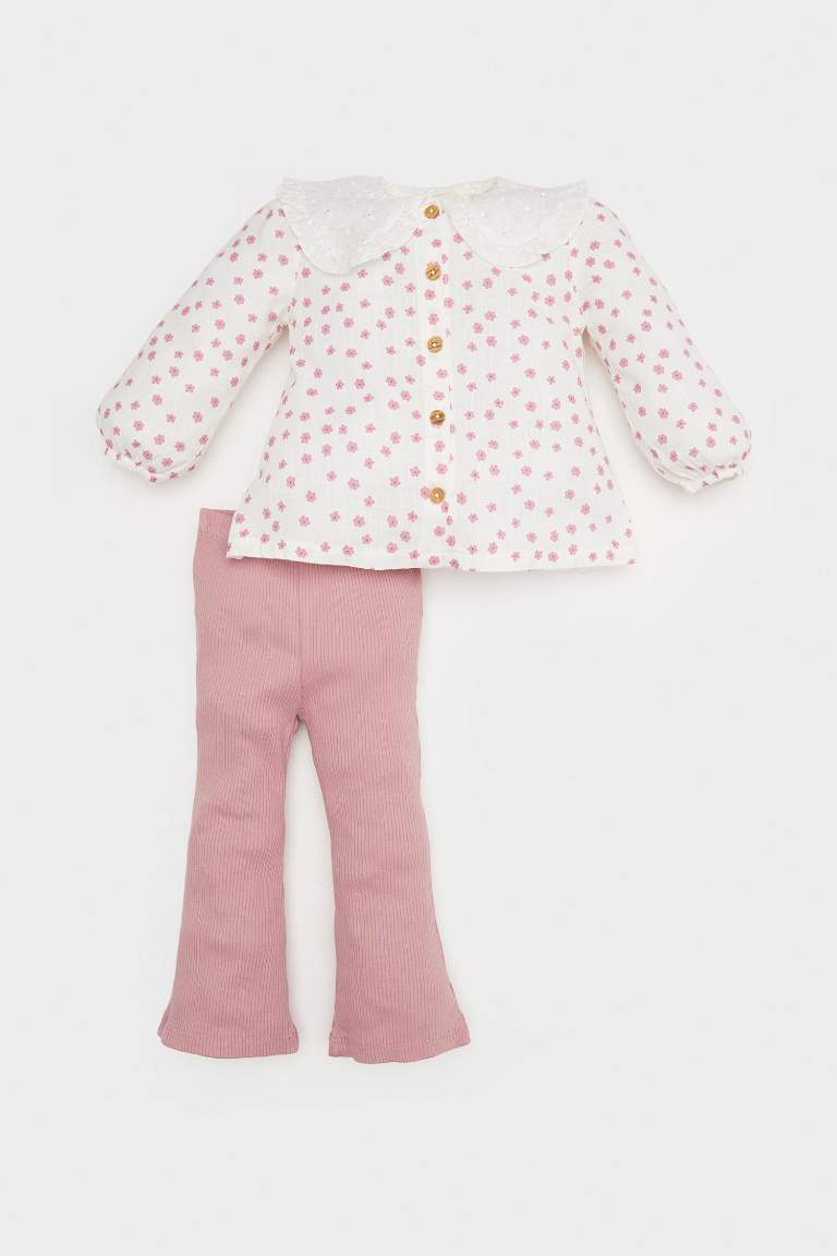 Baby Girl 2-Piece Floral Poplin Long Sleeve Shirt with Elastic Waist Pants