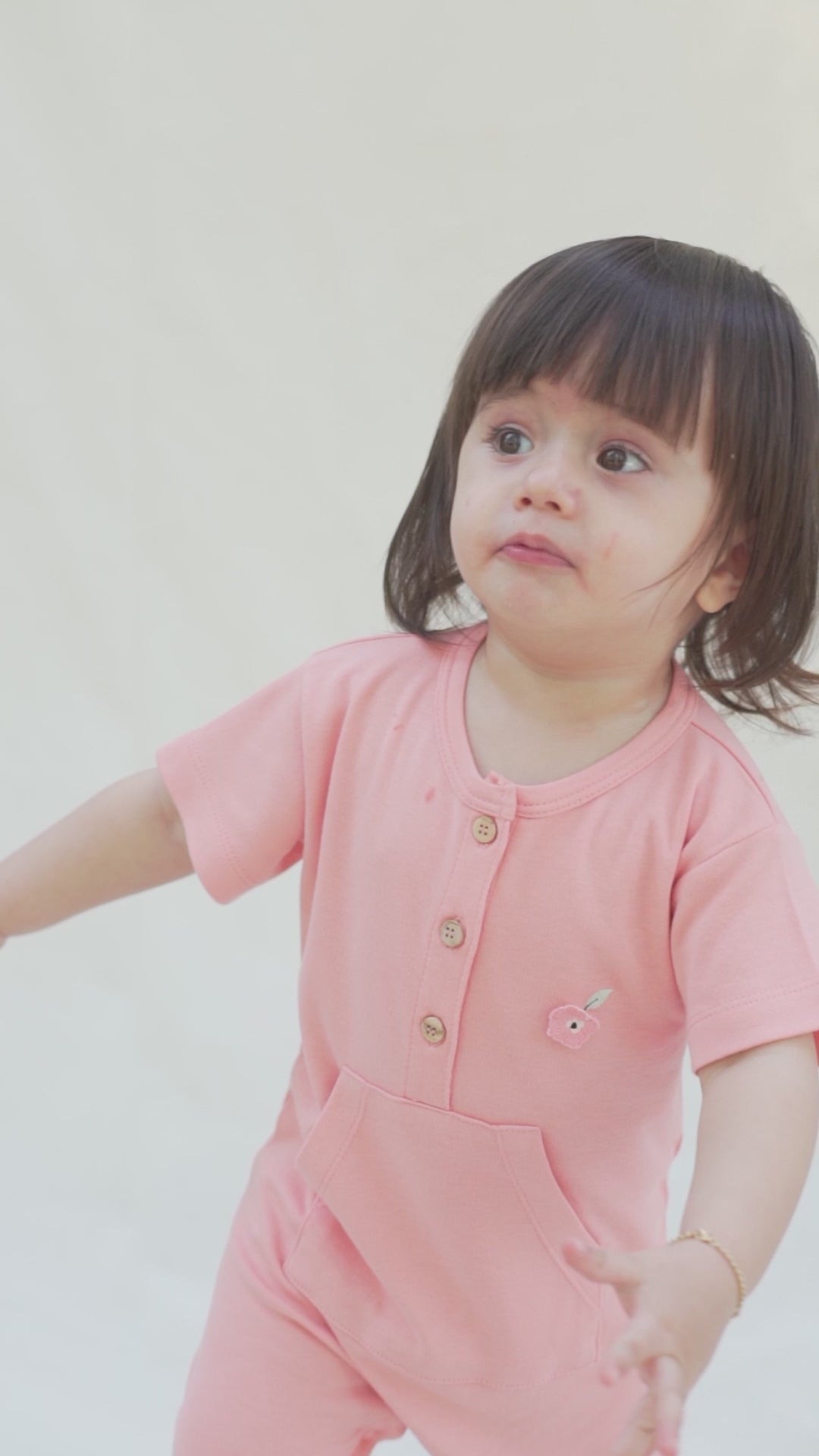 Wrap your little one in comfort and style with our Bamboo Short Sleeve Baby Pink Romper. Crafted from a soft blend of 70% bamboo and 30% organic cotton, this romper is not only gentle on your baby’s skin but also features antibacterial and hypoallergenic properties. Its breathable design keeps your baby cool and comfortable without the use of harmful chemicals. Designed with practical wooden buttons and a kangaroo pocket, it’s perfect for playtime and everyday adventures. Our commitment to sustainability ensures that every piece is made with care for both your child and the environment, making it a safe and stylish choice for your little explorer.