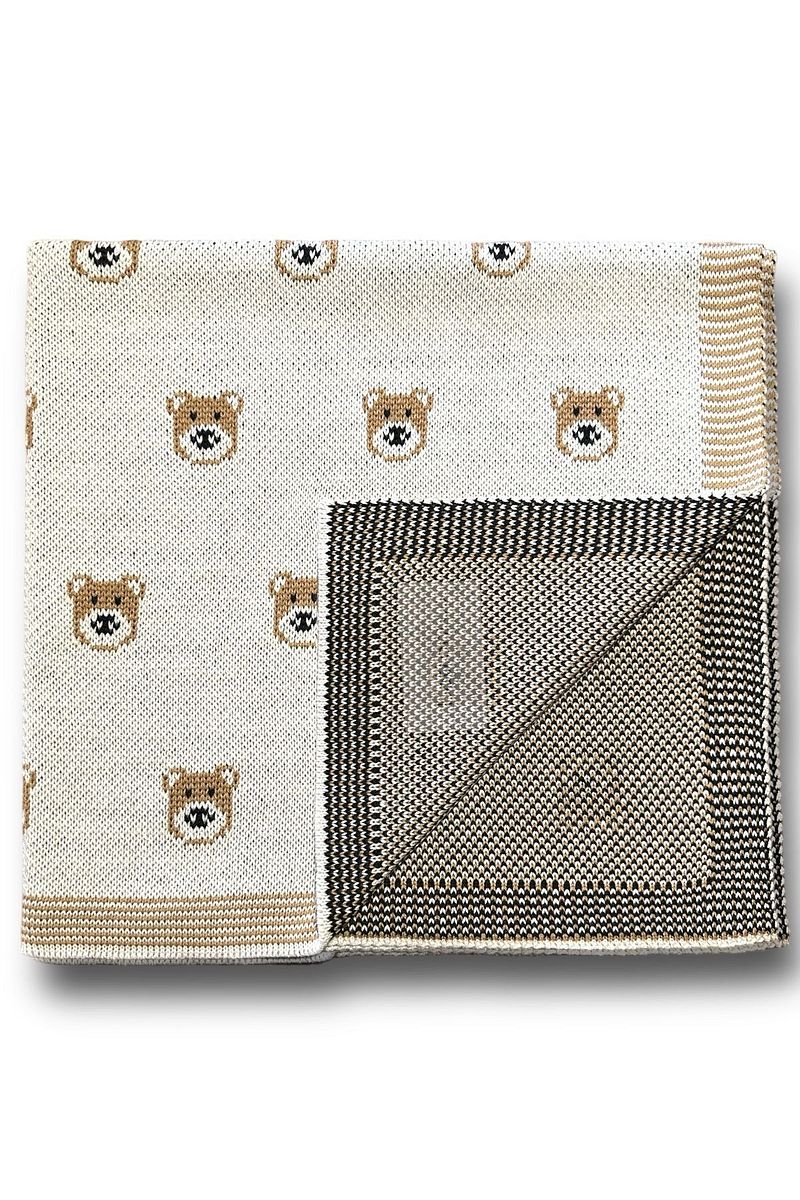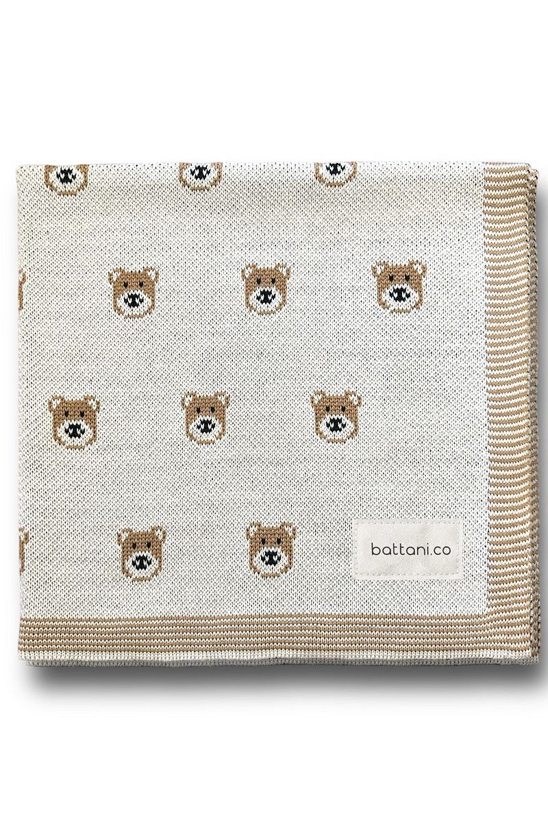 Battani.Co Knitted Baby Blanket with Teddy Bear 85×85 Cm