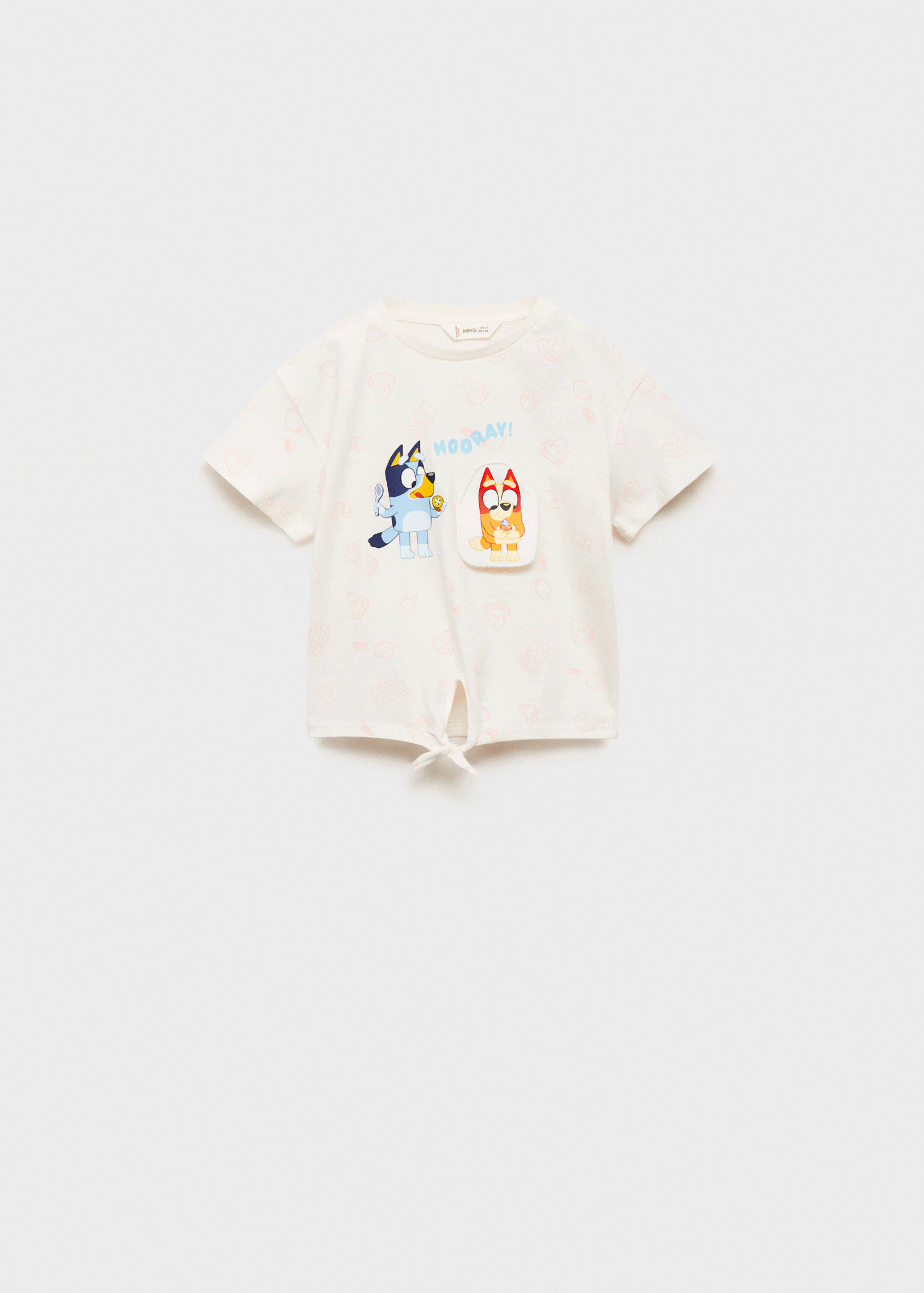 This adorable Bluey patterned t-shirt is made from 100% cotton, ensuring comfort and breathability for your little one’s adventures. With a classic round neckline and short sleeves, it features a charming embroidered detail and a fun printed design on the chest. The stylish tie detail at the bottom adds a playful touch, making it a perfect addition to any child’s wardrobe. Let your child express their love for Bluey while staying cozy and fashionable!