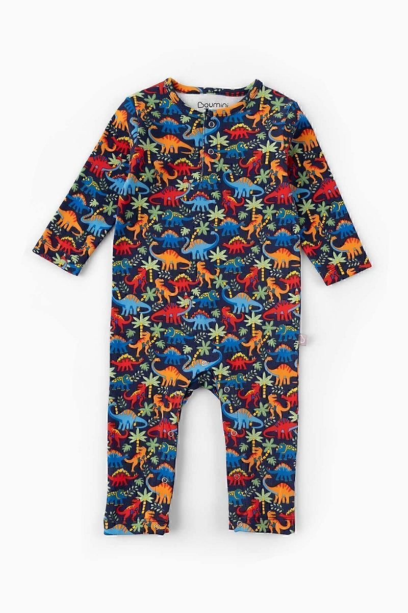 Boumini Baby Long Sleeve Snap Romper with Colorful Dinosaur Print