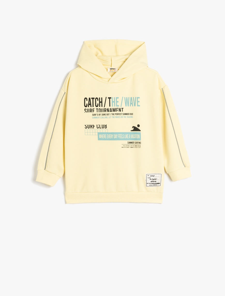 Boys' Hooded Long Sleeve Oversized Slogan Print Sweatshirt