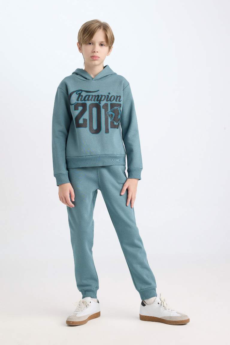Boys’ Hooded Printed Sweatshirt and Elastic Waist Jogger Set