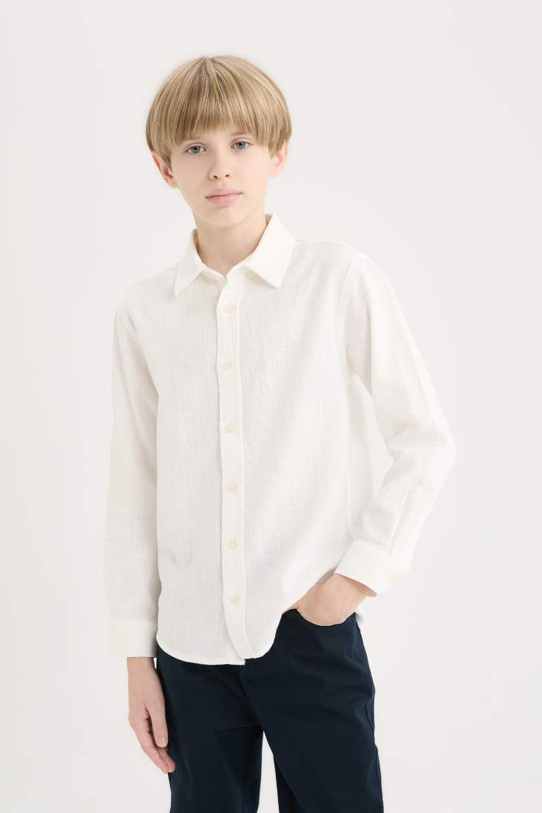 Boys’ Long Sleeve Polo Collar Linen Look Shirt