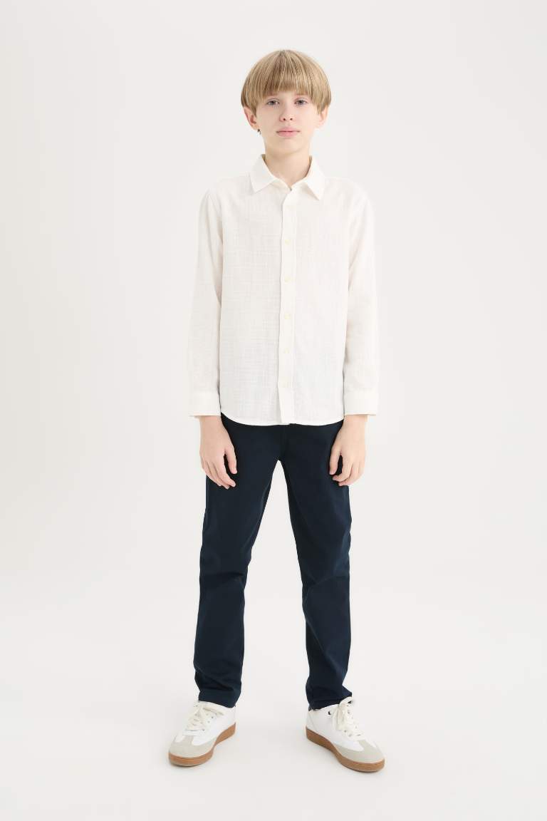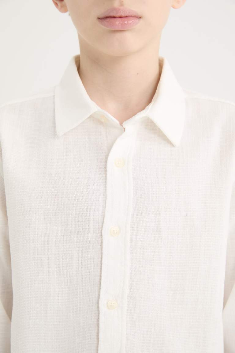 Boys' Long Sleeve Polo Collar Linen Look Shirt