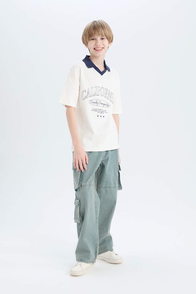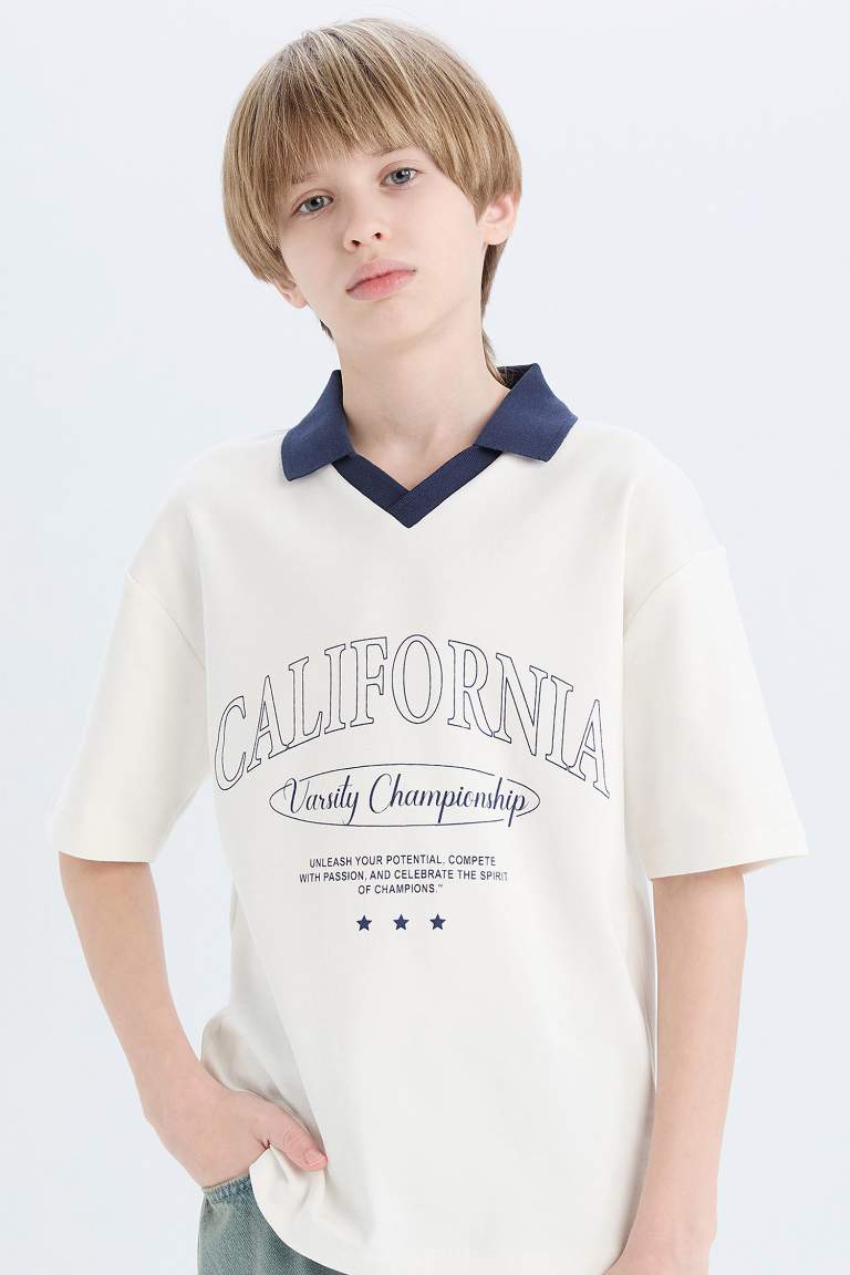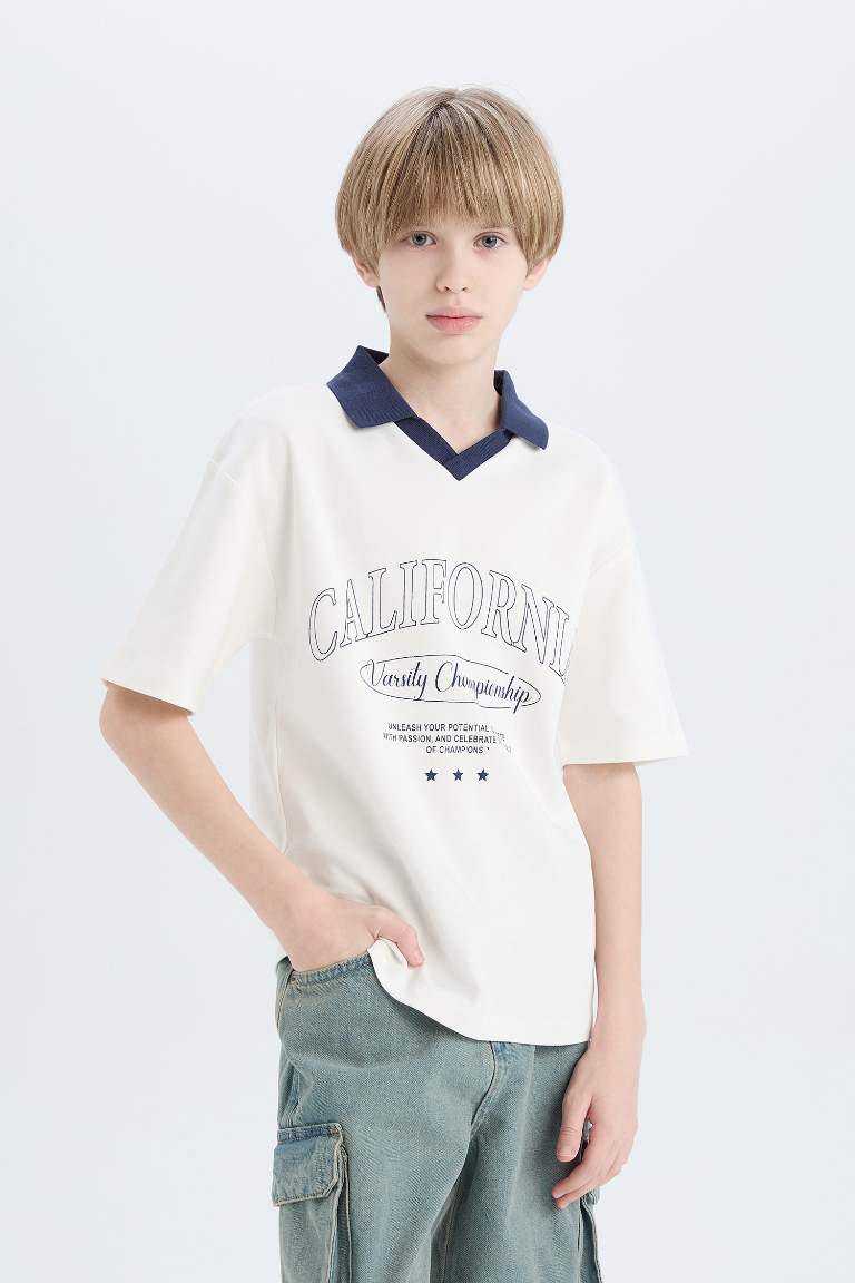 Boys' Oversized Fit Printed Polo Short Sleeve T-Shirt