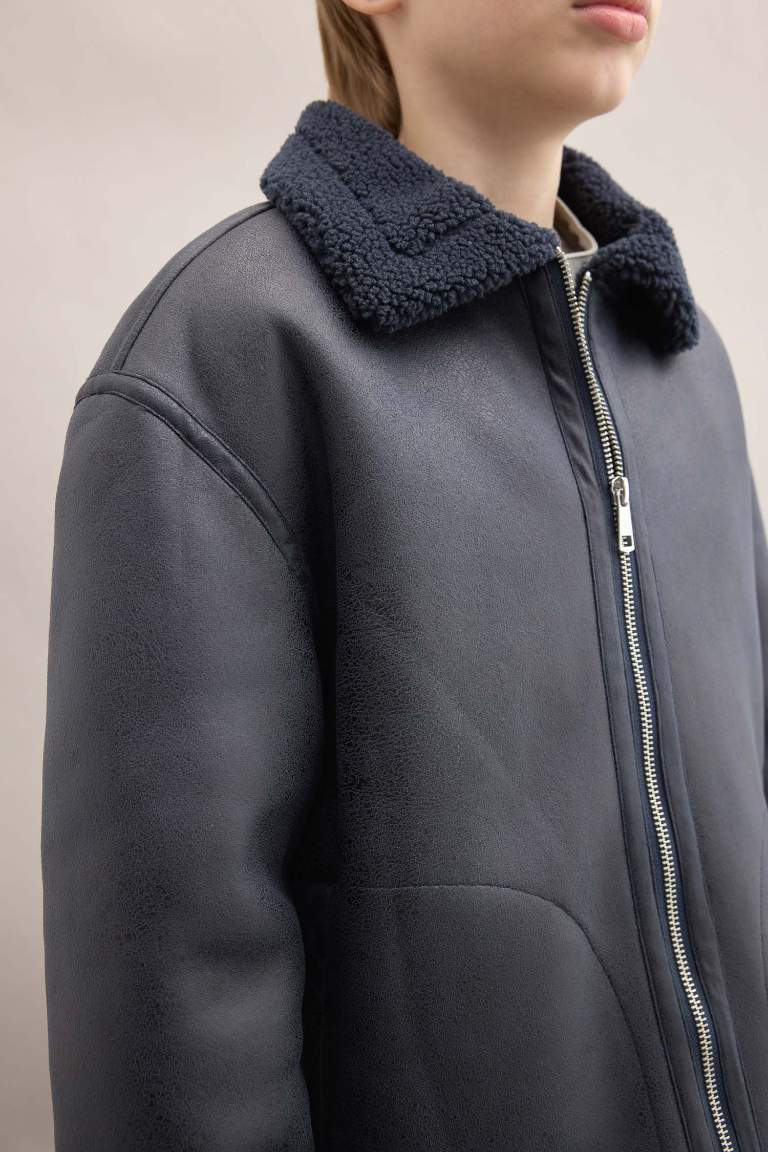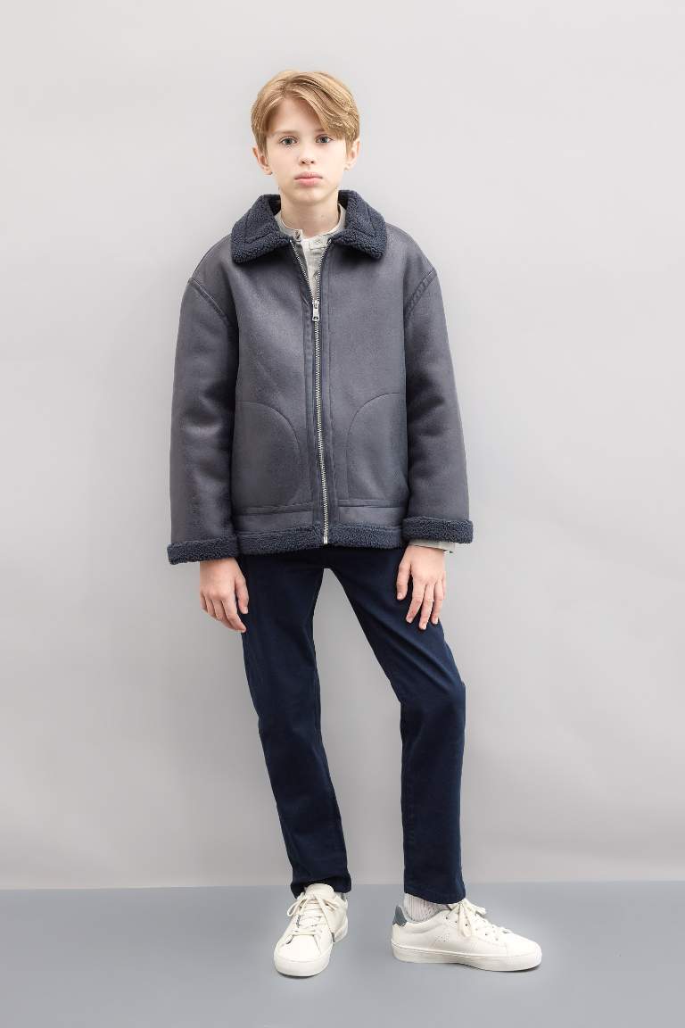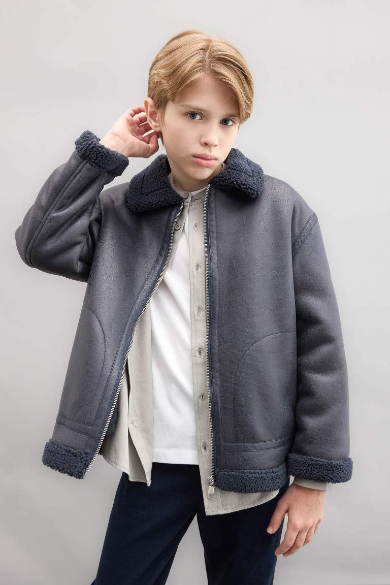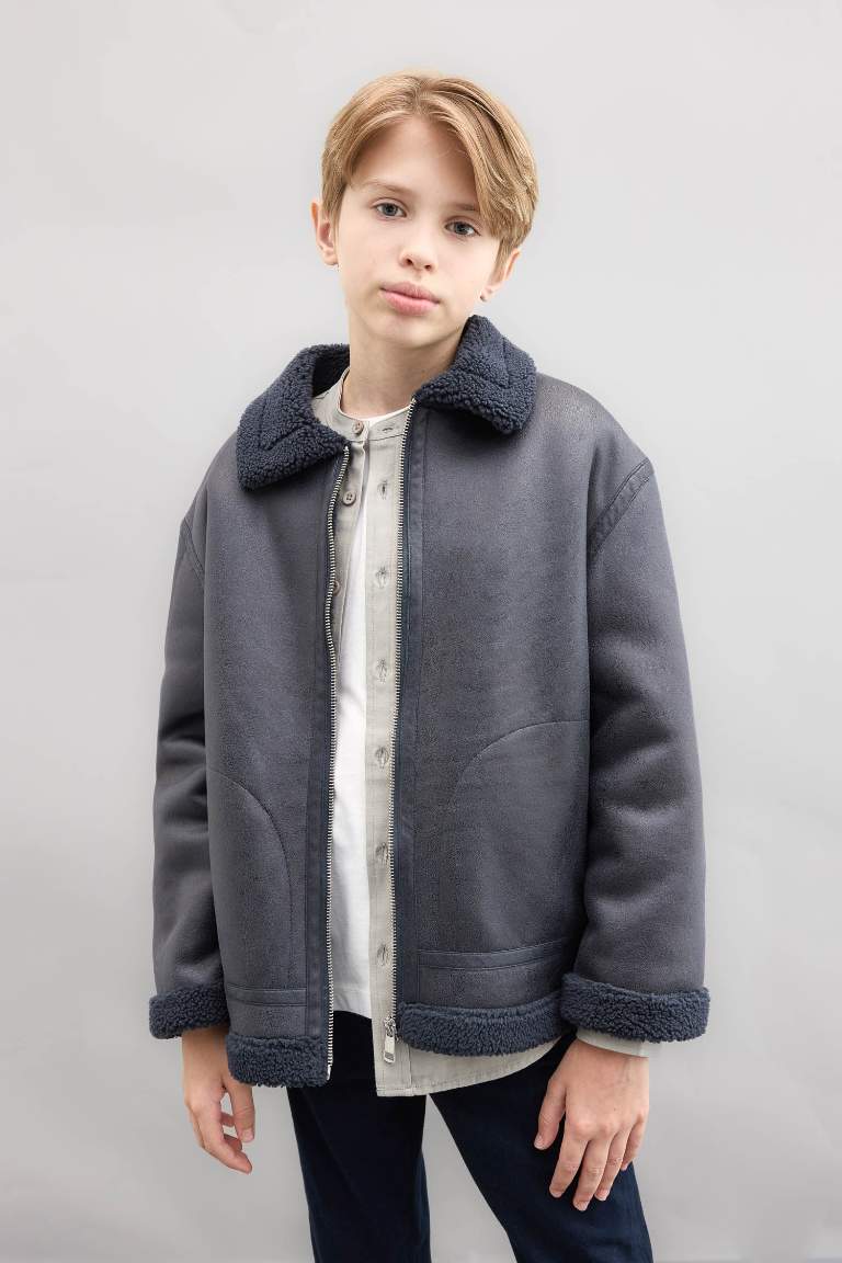 Boys' Polo Collar Fleece Lined Jacket