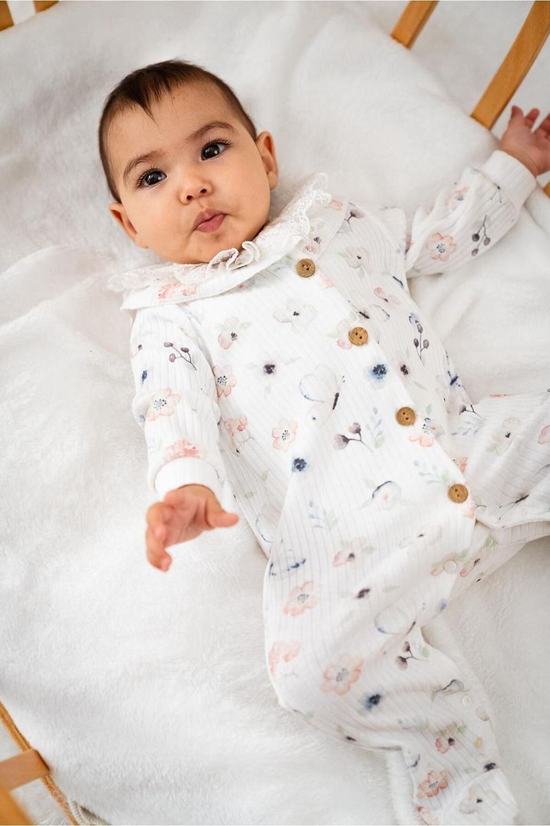 كن أول من يقيم “Bubbles Organic Fabric Front Button Lace Embellished Baby Girl Romper”