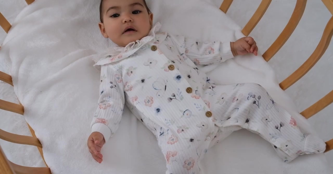 Dress your little princess in the charming Bubbles Organic Fabric Front Button Lace Embellished Baby Girl Romper. This delightful romper is made from soft, breathable organic fabric, ensuring comfort for all-day wear. The delicate lace detailing adds a touch of elegance, while the front button design makes dressing a breeze. Perfect for playdates or special occasions, this romper combines style and functionality, making it a must-have for your baby’s wardrobe.