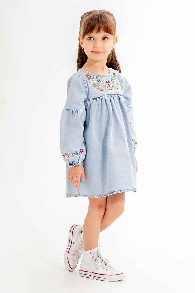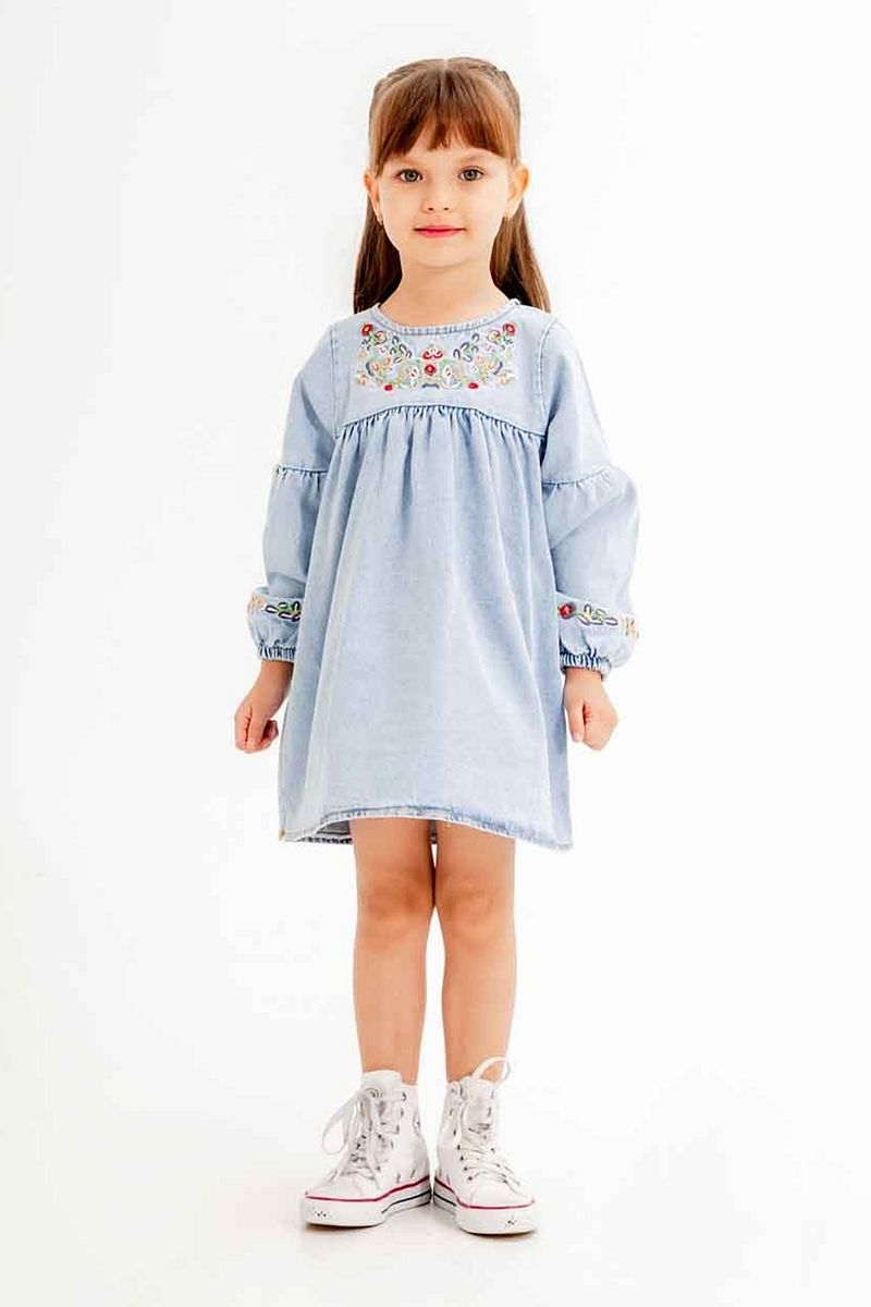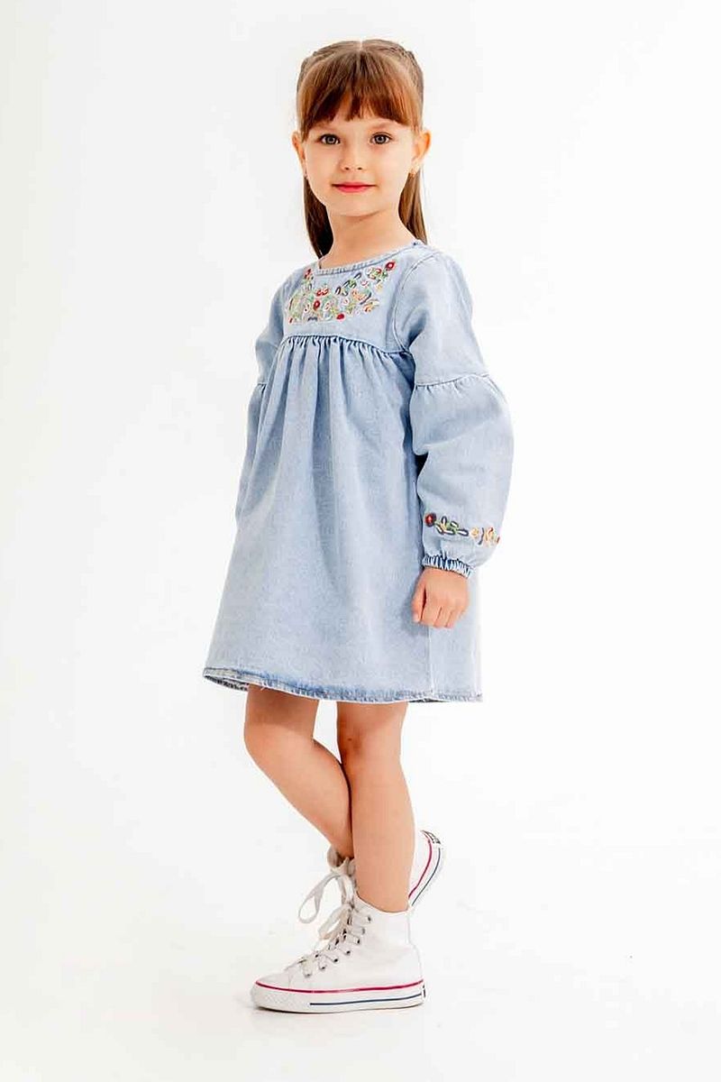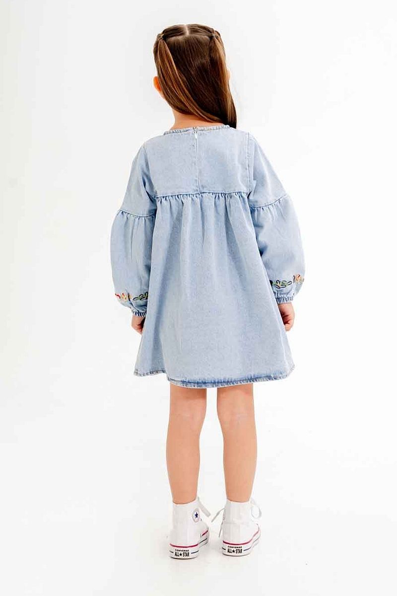 Cansın Mini Blue Floral Embroidered Sleeve Girl’s Jean Dress