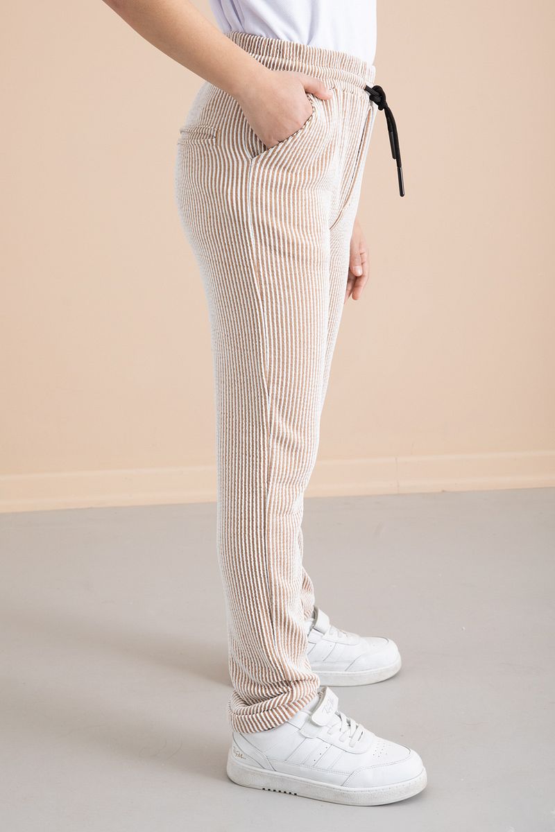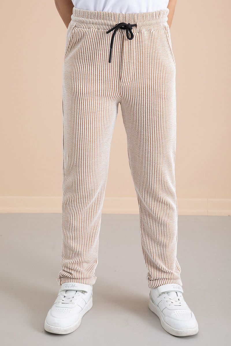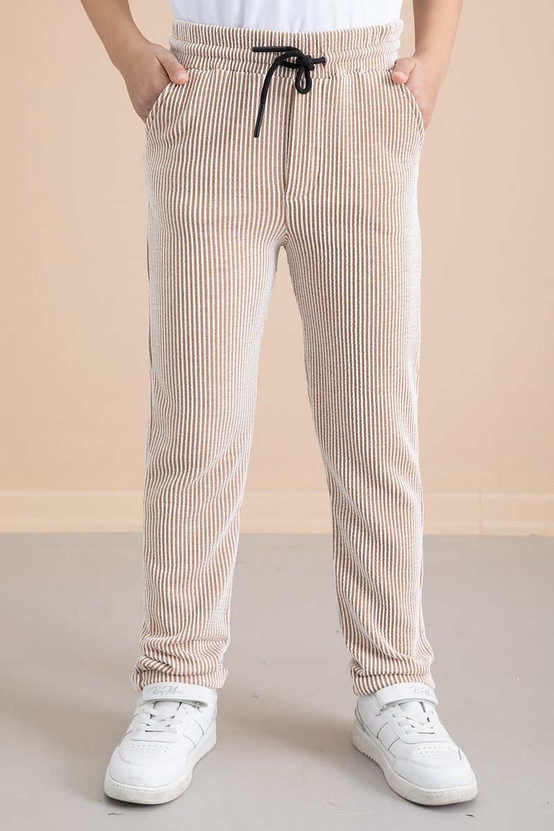 Cansın Mini Corduroy Tan Striped Boys Elastic Waist Pants