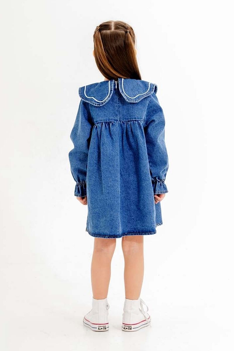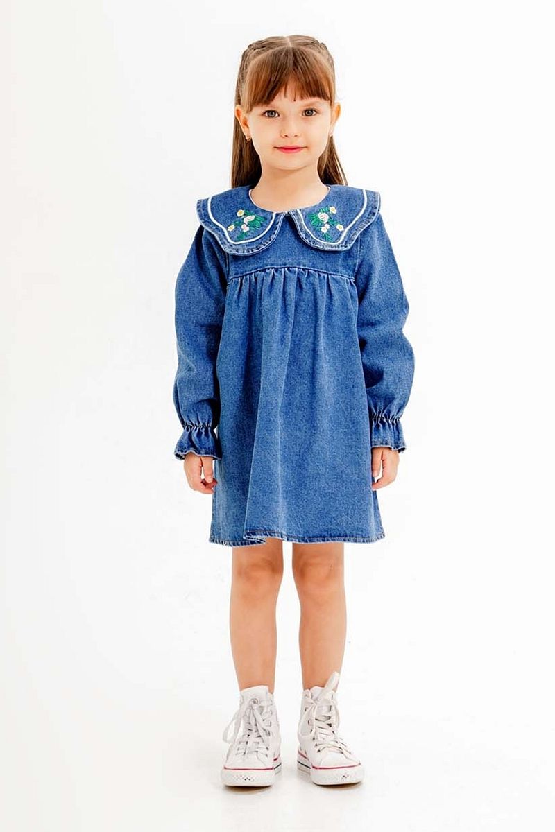 Cansın Mini Navy Blue Flower Embroidered Long Sleeve Denim Dress for Girls
