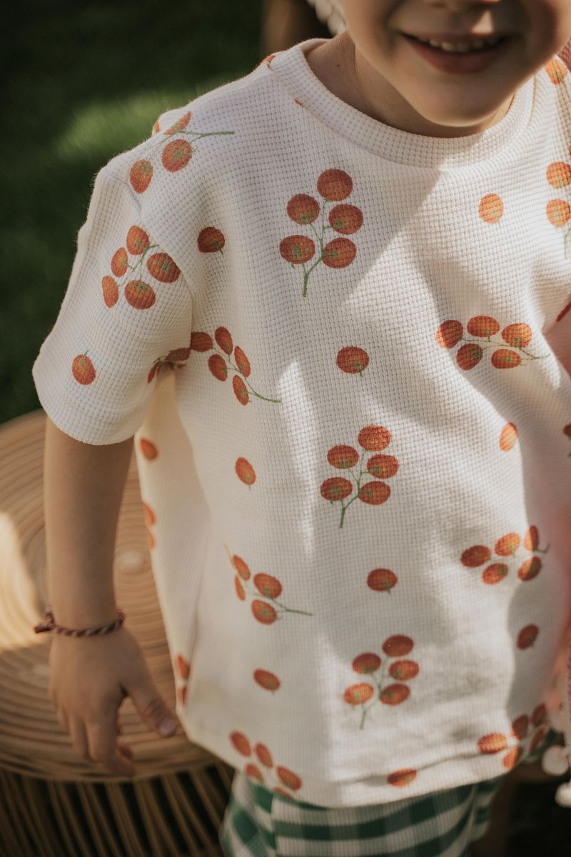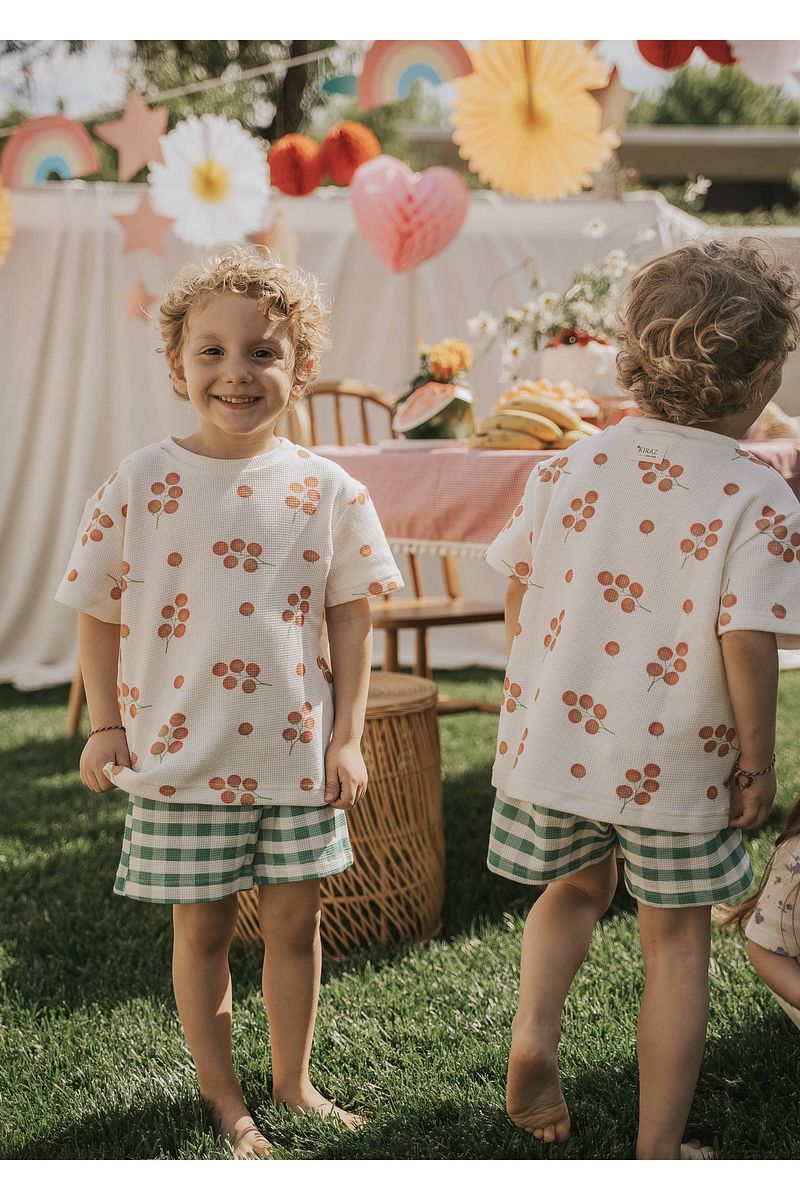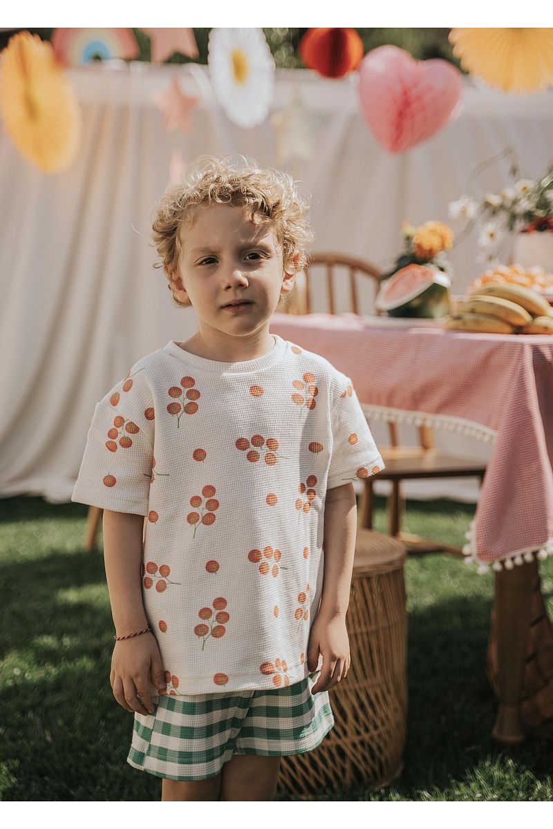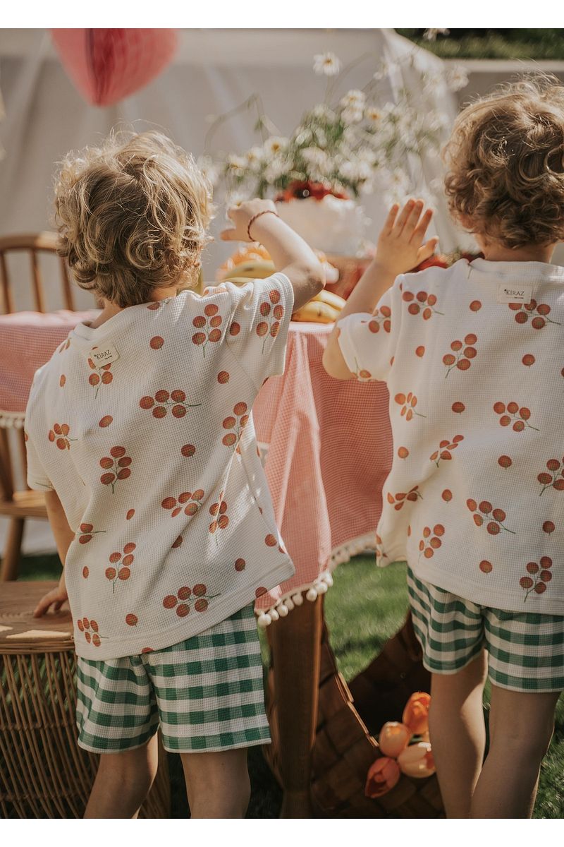 Cherry Kids Tomato Print T-Shirt and Checkered Shorts Set for Boys and Girls