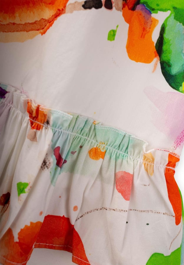 Collared Elastic Cuff Poplin Dress 2-7 Years Ecru Patterned
