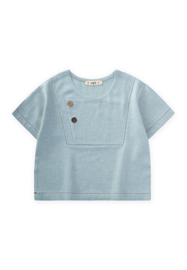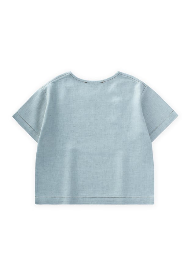 Contrast Stitch Linen Blouse for Ages 2-7 Blue