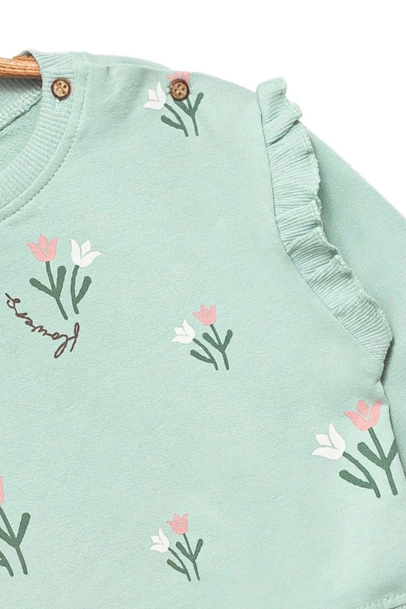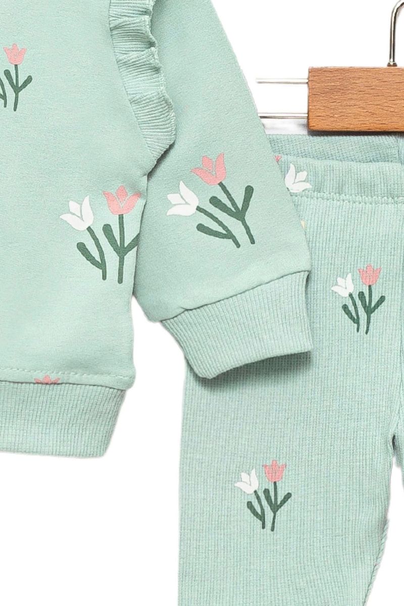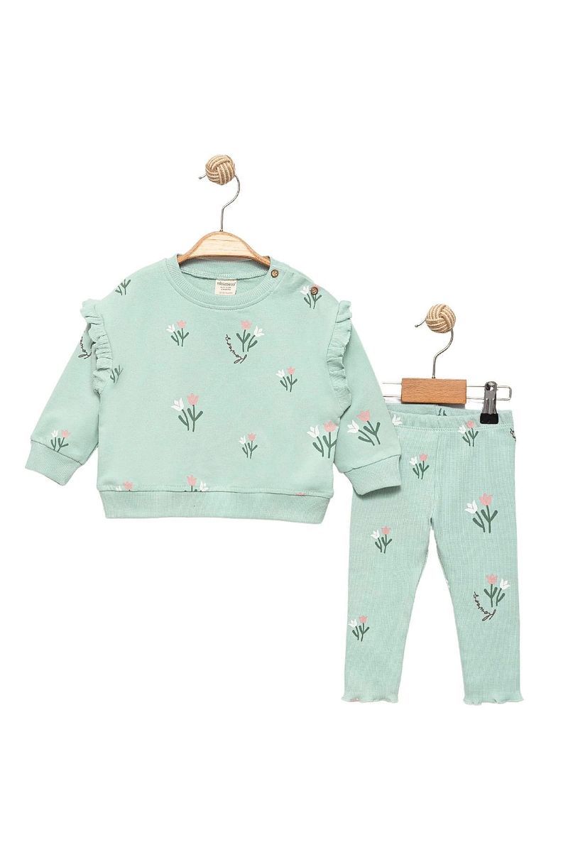 Divonette Green Sweatshirt and Ribbed Leggings Set for Baby Girls