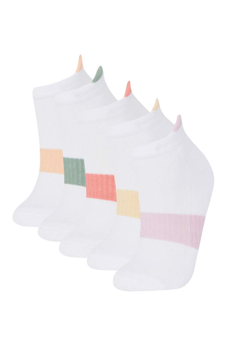 جوارب قطنية للكاحل للبنات - عبوة من 5 قطع