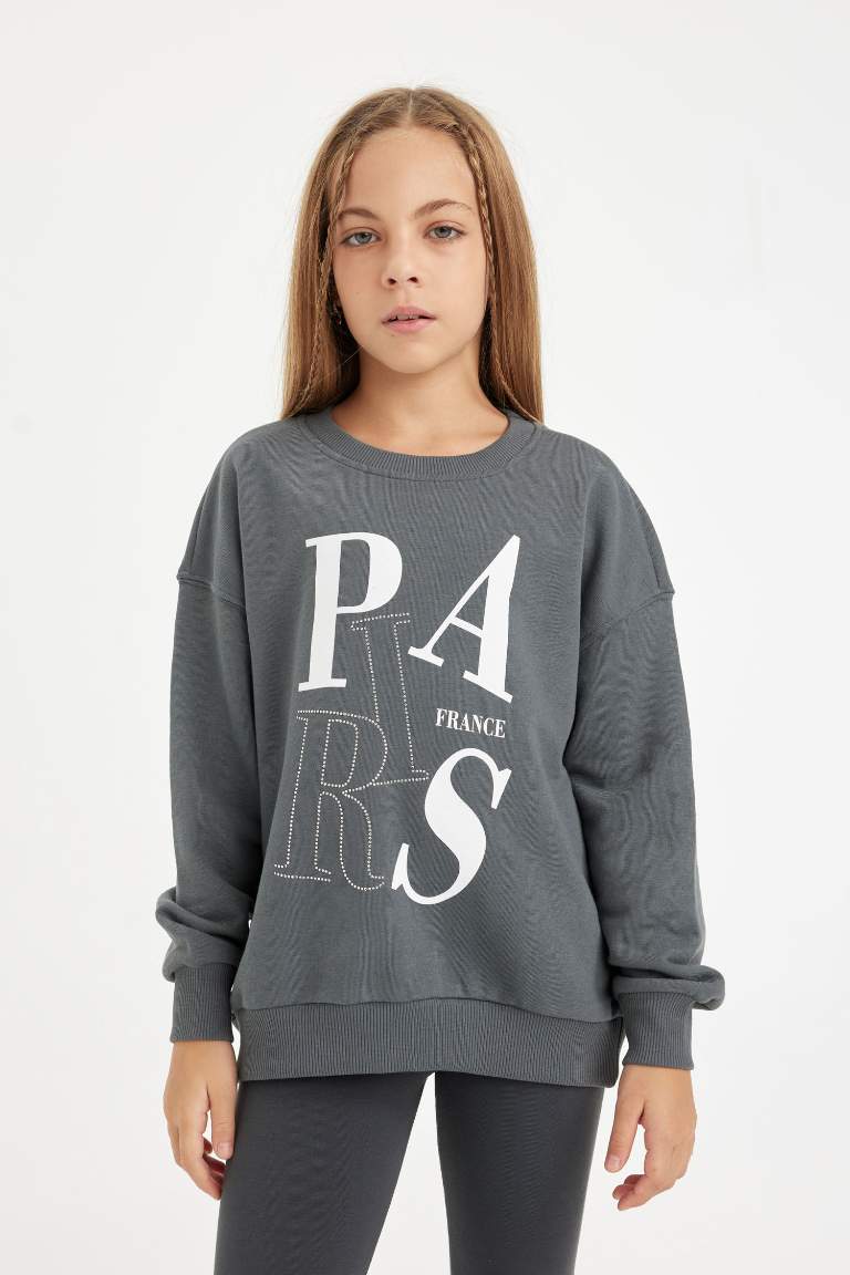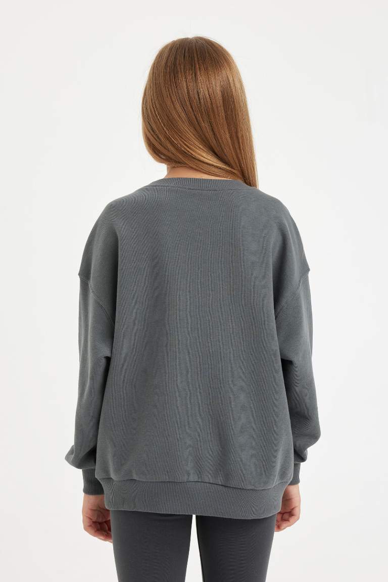Girls' Anthracite Oversized Wide Fit Printed Sweatshirt