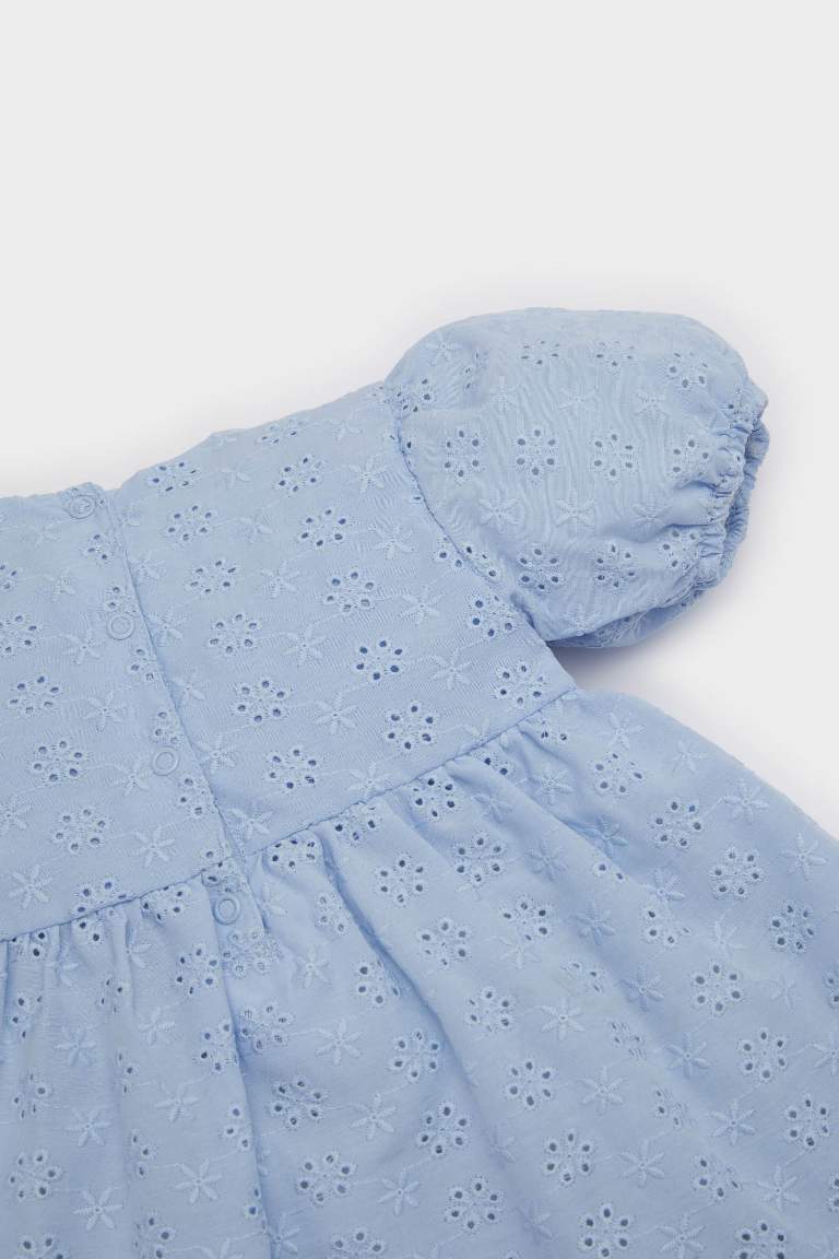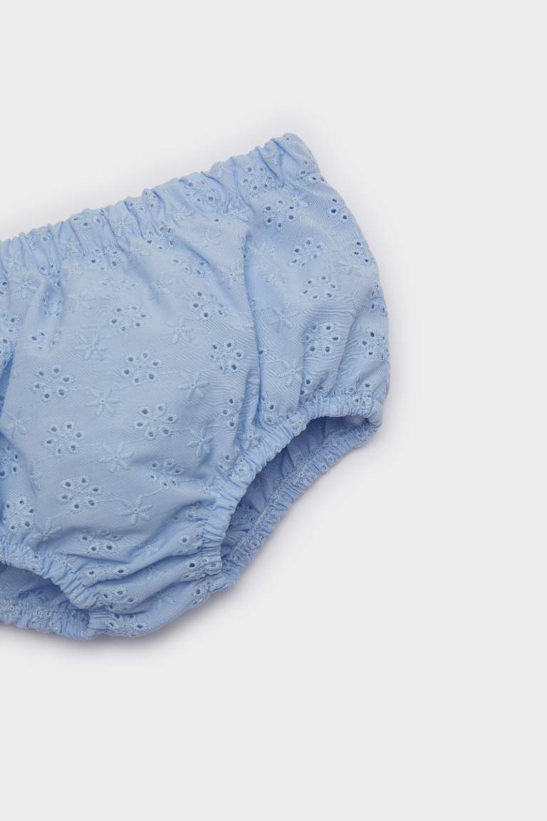 Dress your little one in this adorable 2-piece set, featuring a charming floral embroidered dress with short sleeves, perfect for warm days. The matching panty adds an extra layer of comfort, making it an ideal choice for playdates or family outings. Made from 100% cotton, this outfit ensures softness and breathability, keeping your baby girl comfortable all day long. A delightful addition to her wardrobe that combines style and practicality!