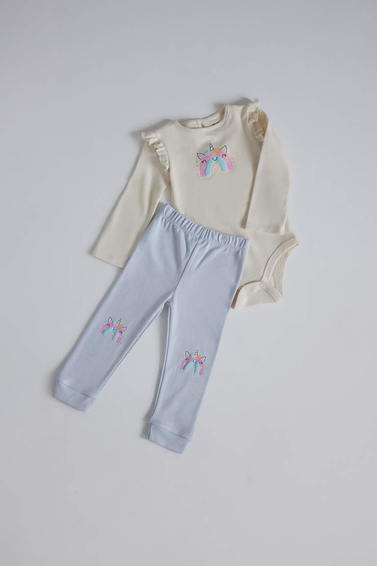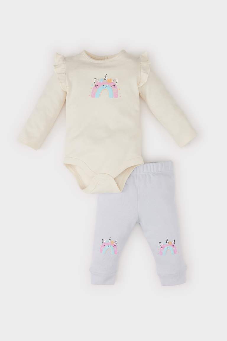 Girls’ Baby 2-Piece Unicorn Print Long Sleeve Bodysuit with Elastic Waist Bottom