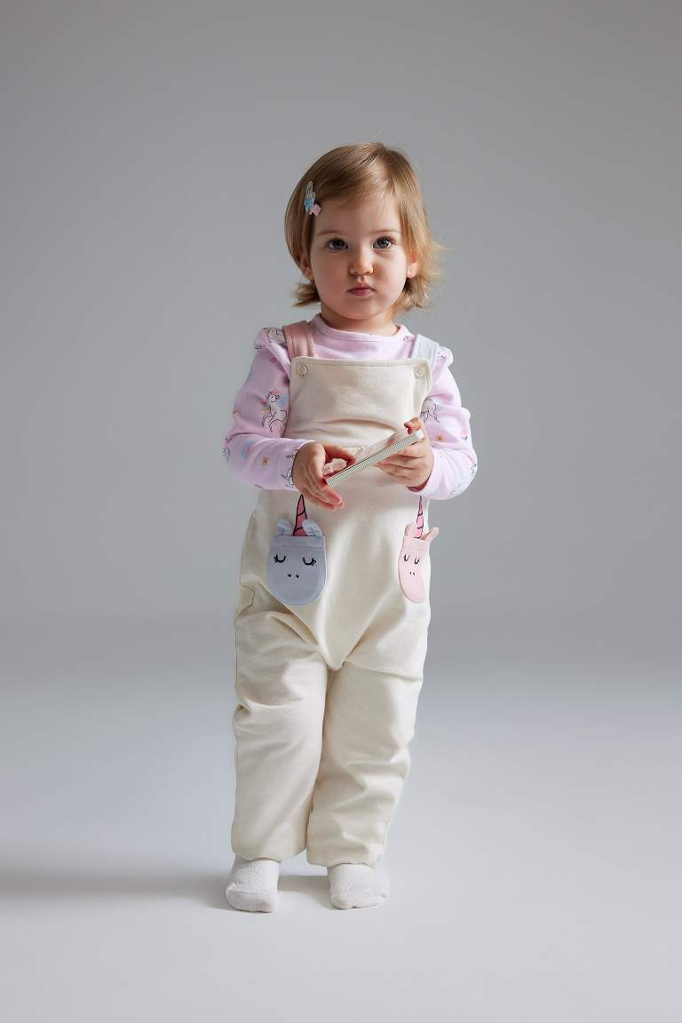 Dress your little one in this adorable 2-piece set featuring a playful unicorn print on a cozy sweatshirt paired with stylish dungarees. Perfect for keeping your baby comfortable while looking cute, this outfit is ideal for playdates and everyday adventures. Crafted with soft, breathable fabric, it ensures your child’s comfort all day long.