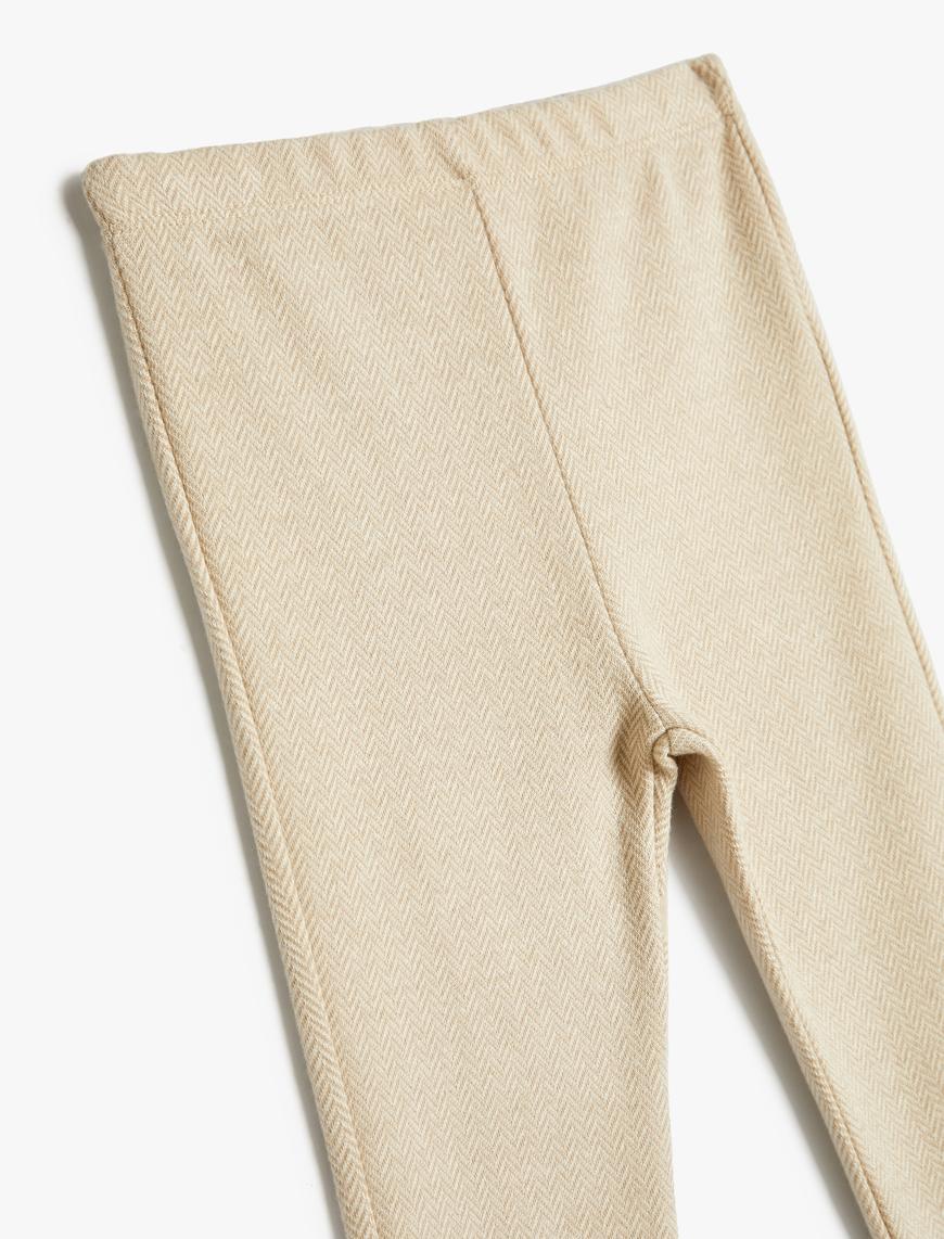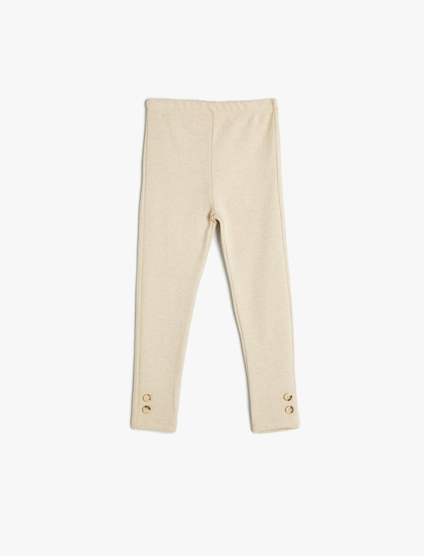 Girls' Baby Button Detail Herringbone Textured Elastic Waist Leggings