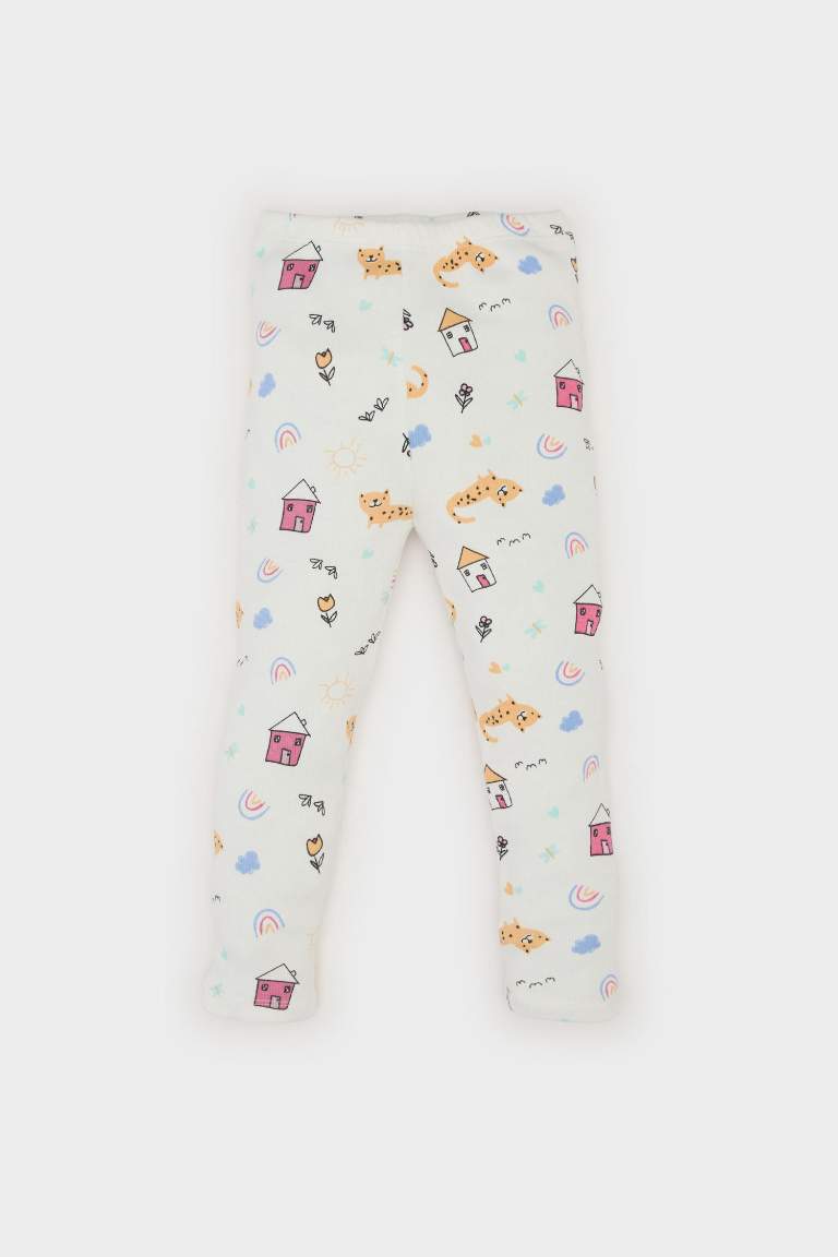 Girls’ Baby Pajama Set with Patterned Short Sleeve Ribbed Top and Elasticated Long Pants
