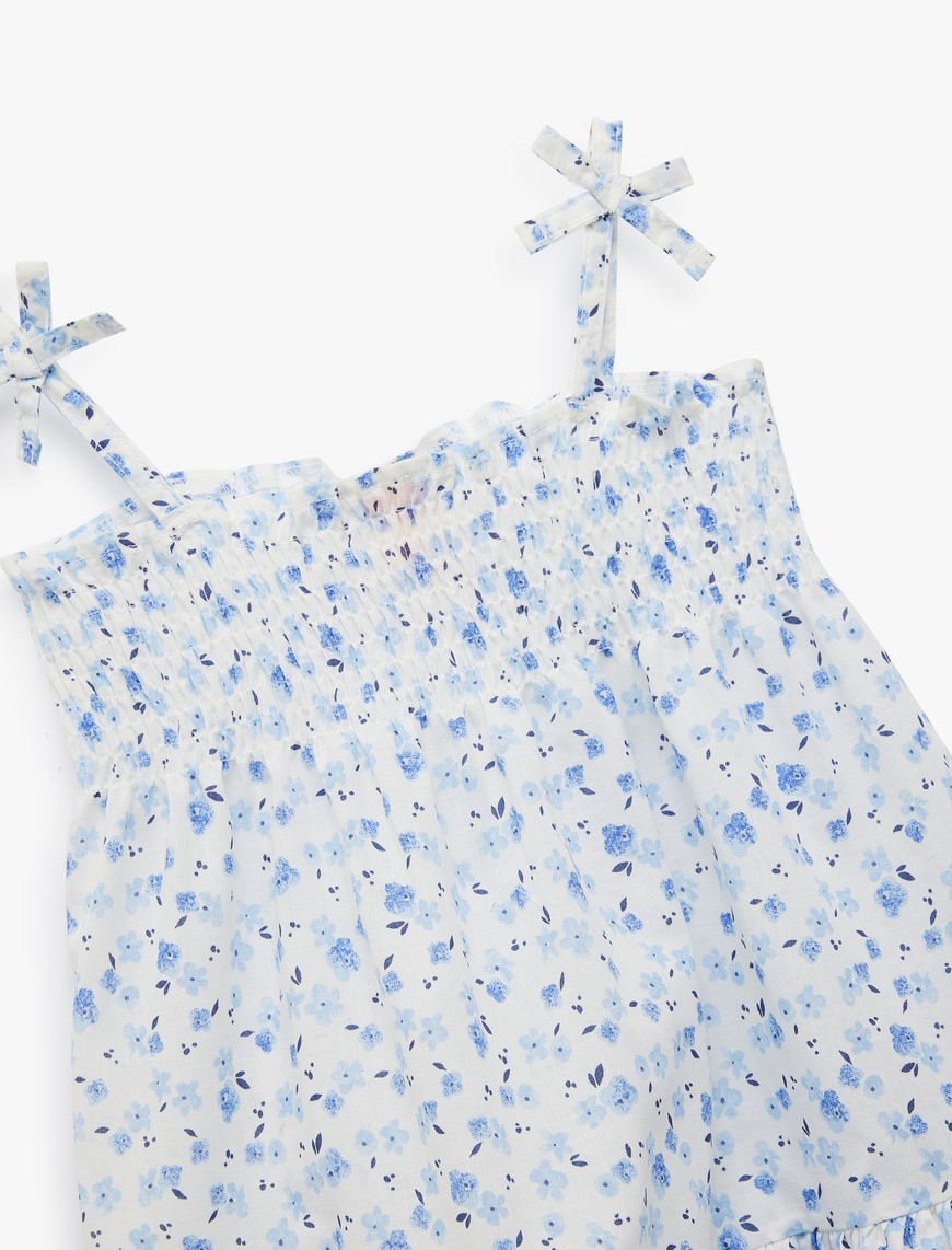 This charming and elegant mini dress features a delightful floral pattern and adorable bow accents, making it a standout piece for your little one’s wardrobe. Designed for comfort, the dress’s smocked fabric allows for easy movement, perfect for active toddlers. Made from 100% cotton, it is an essential choice for warm summer days. Ideal for everyday wear or special occasions, this dress combines style and practicality, ensuring your baby stays safe and comfortable. Explore our collection now to add some colorful and fun designs to your baby’s clothing lineup!