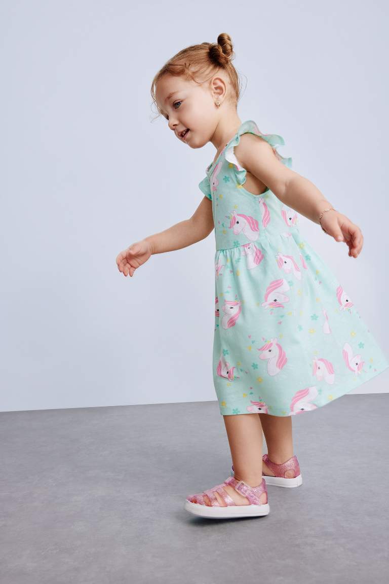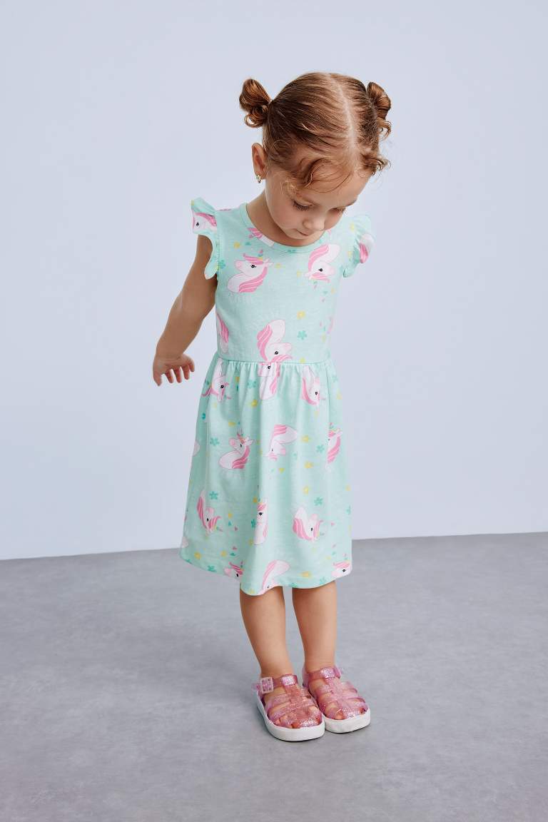 This adorable girls’ printed short sleeve dress is perfect for warm days, combining comfort and style effortlessly. Made from 100% cotton, it ensures a soft touch against your child’s skin while allowing them to play freely. The charming designs will make your little one feel special, whether it’s for a day at the park or a family gathering. Dress her up in this delightful piece for a look that’s both fashionable and fun!