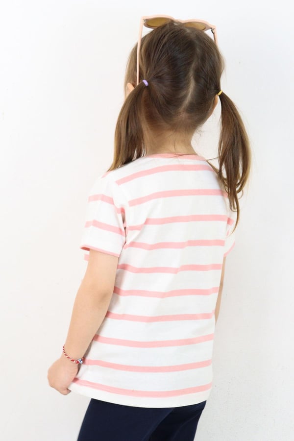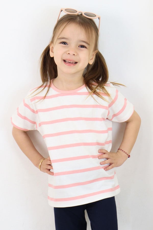 Dress your little one in style with this adorable girls’ striped button-up t-shirt in ecru. Designed for comfort and ease, this regular-fit tee features a classic crew neckline and short sleeves, perfect for warm summer days. Made from 100% cotton, it ensures breathability and softness against your child’s skin. The charming button detail on the shoulder adds a playful touch, making it easy to put on and take off. Ideal for everyday wear, this versatile piece pairs well with shorts or skirts, adding a touch of fun to your child’s wardrobe.