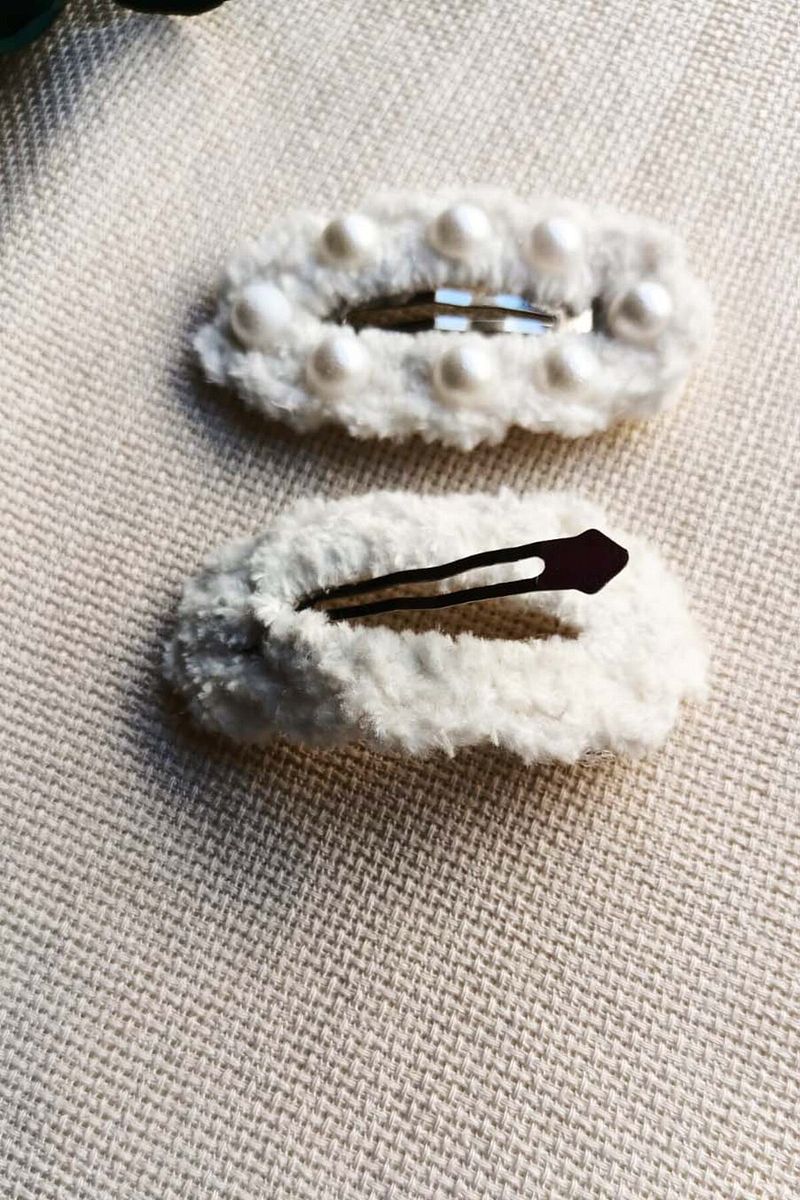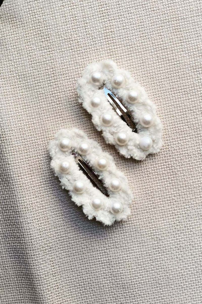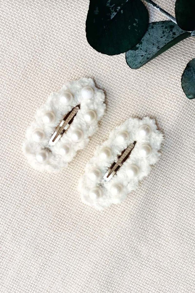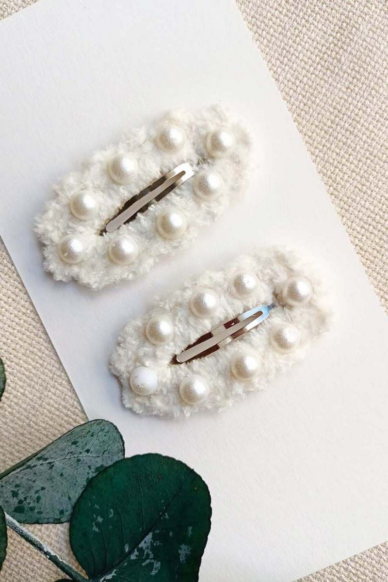 Handcrafted White Snap Hair Clip with Pearl Embellishments for Girls