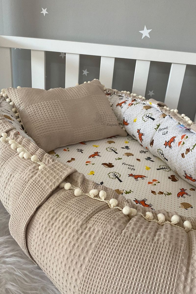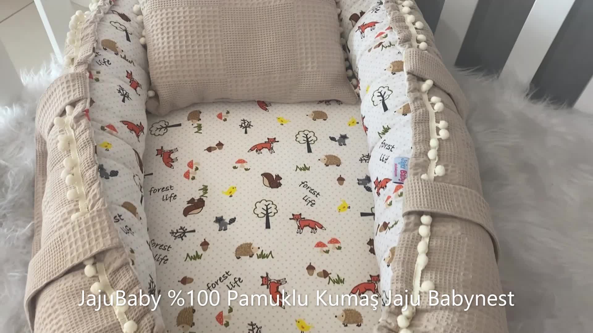 Jaju Baby Fox Design Organic Cotton Nest with Pom Poms