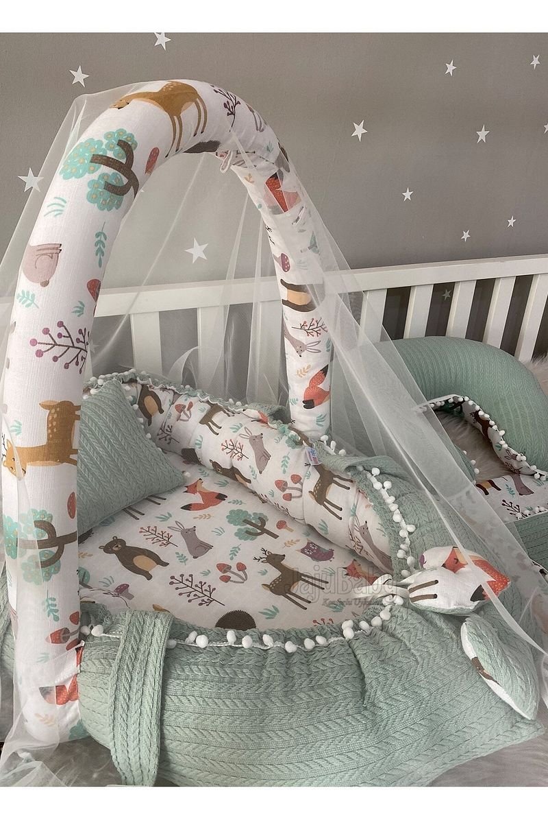 كن أول من يقيم “Jaju Baby Green Knit Nest with Forest Pattern and Pom Poms 6-Piece Side Bed Set”