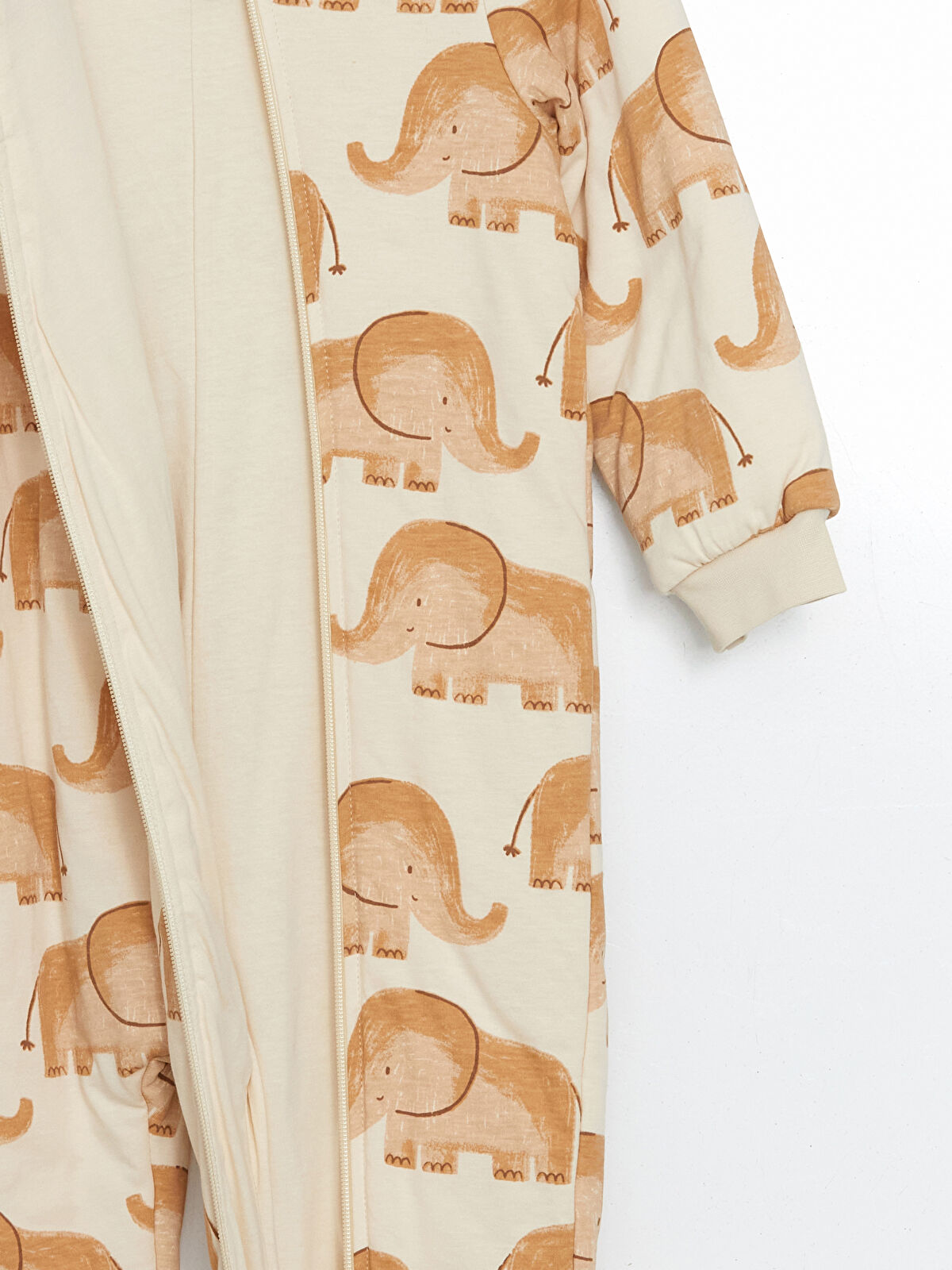 Wrap your little one in comfort with our LCW Baby Beige Printed Sleep Bag, designed for boys. Made from 100% cotton with a playful elephant print, this sleep bag features a cozy crew neck, long sleeves, and a convenient front zipper for easy dressing. The ribbed cuffs ensure a snug fit, while the loose and spacious design allows for freedom of movement. Perfect for keeping your baby warm and stylish during nap time or nighttime, this sleep bag is an essential addition to your newborn’s wardrobe.