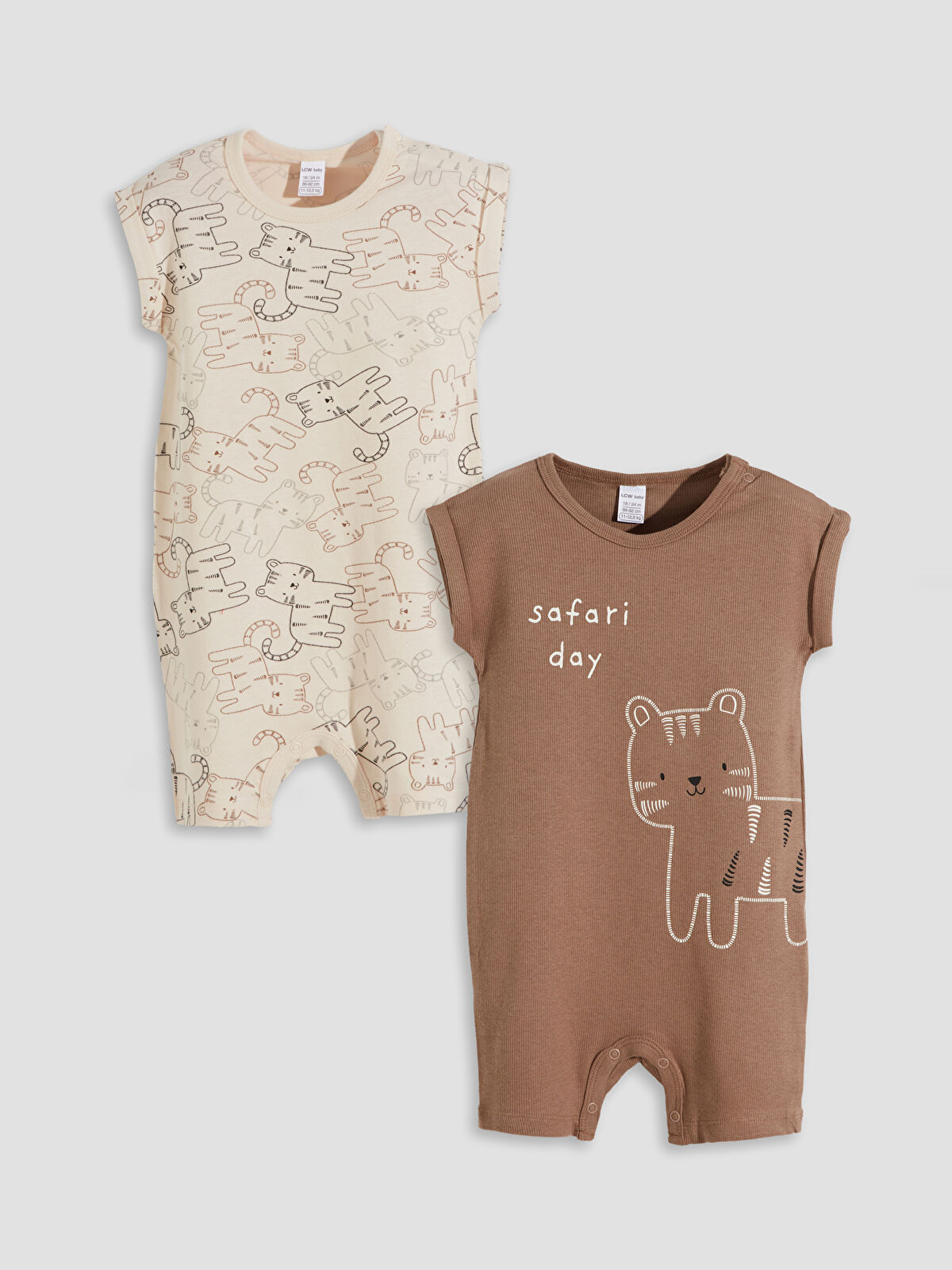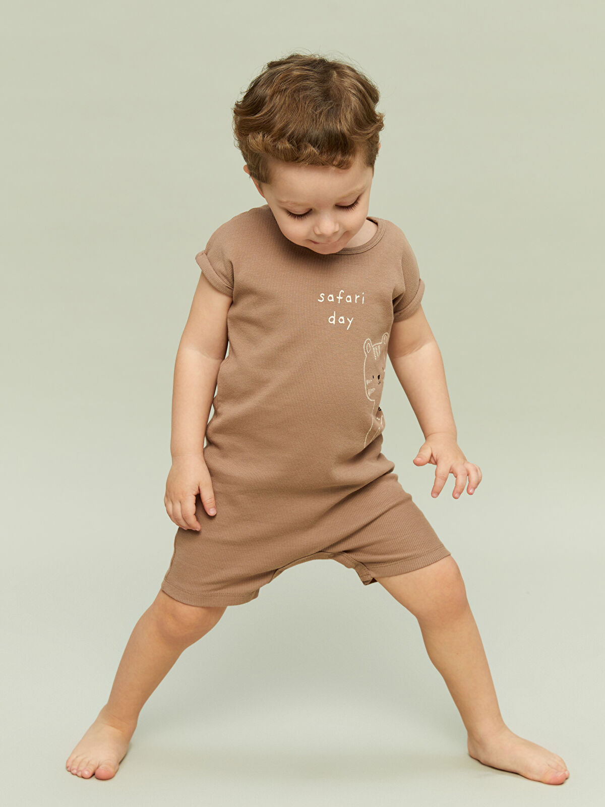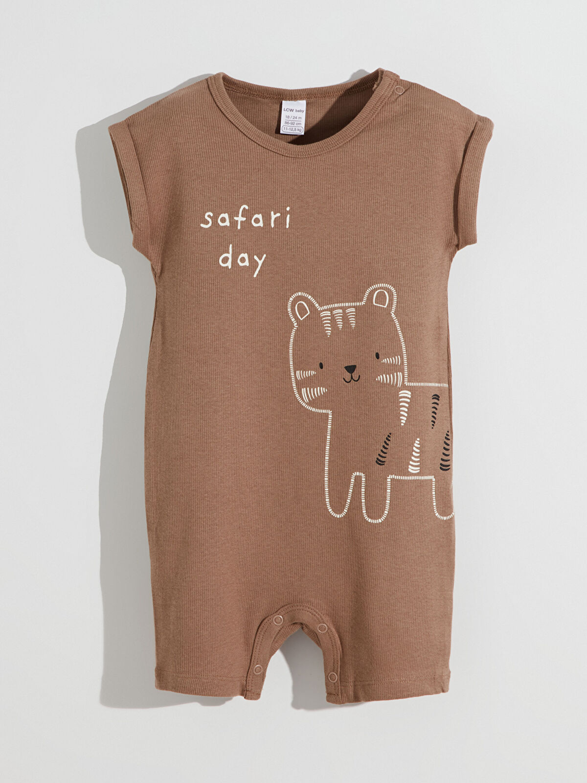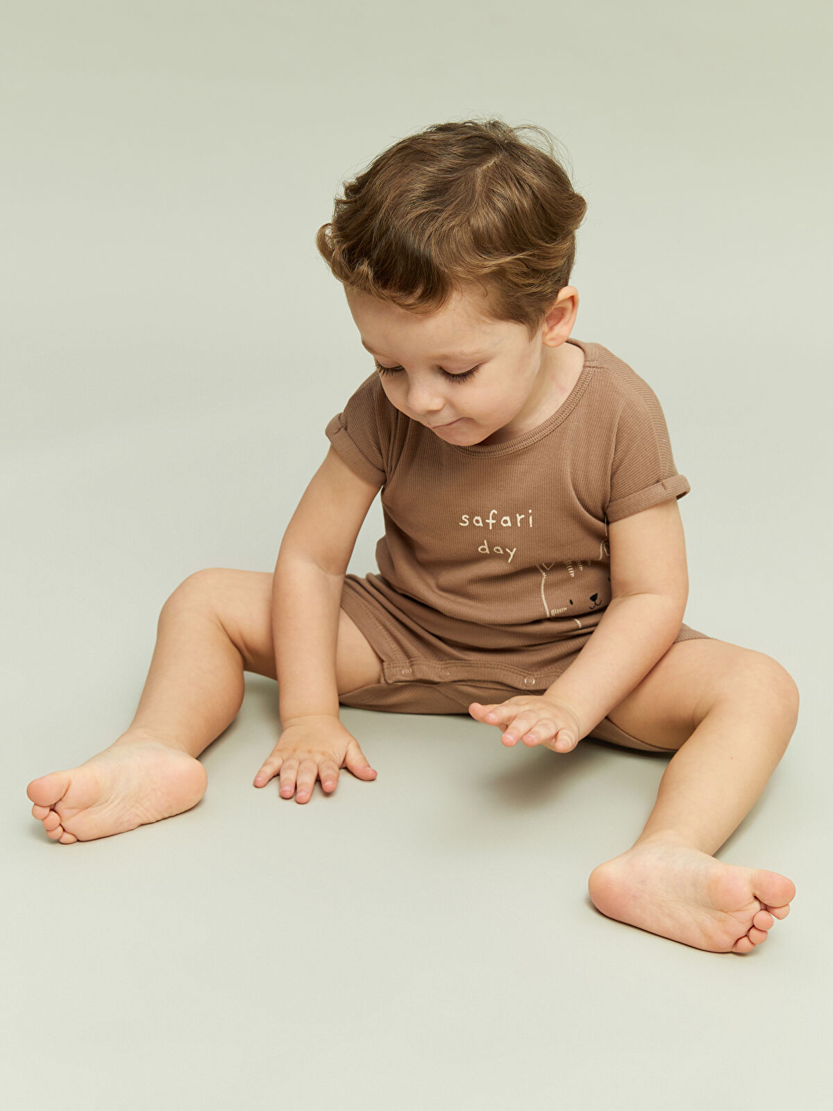 LCW Baby Beige Printed Boy's Cotton Romper Set