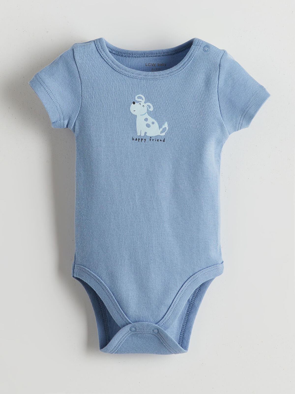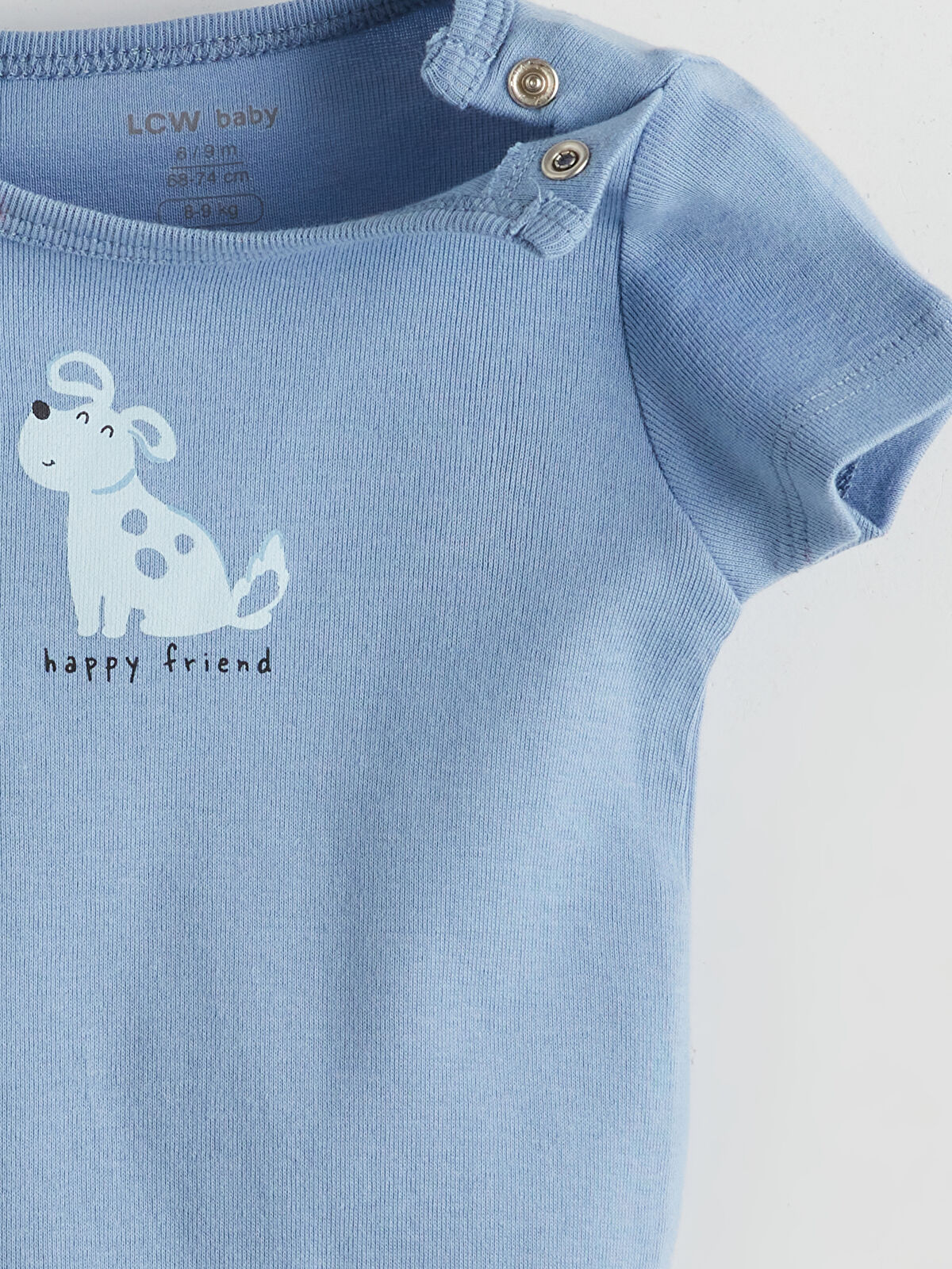 LCW Baby Blue Printed Cotton Bodysuit for Boys