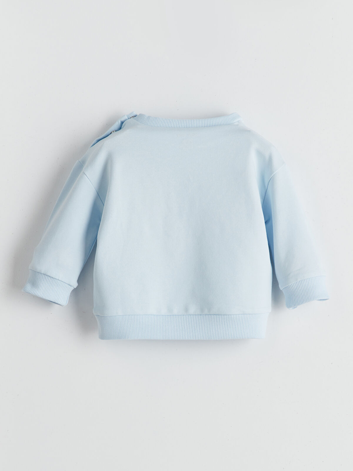 LCW Baby Blue Printed Crew Neck Sweatshirt