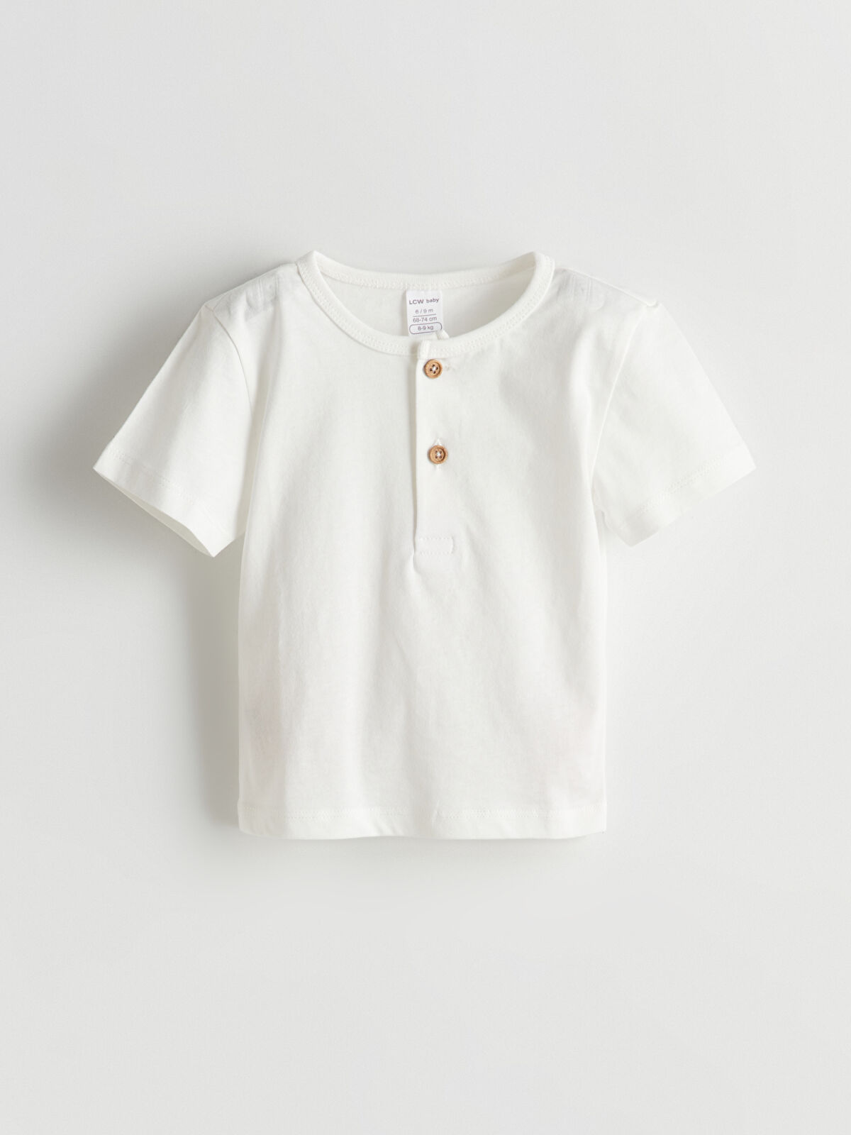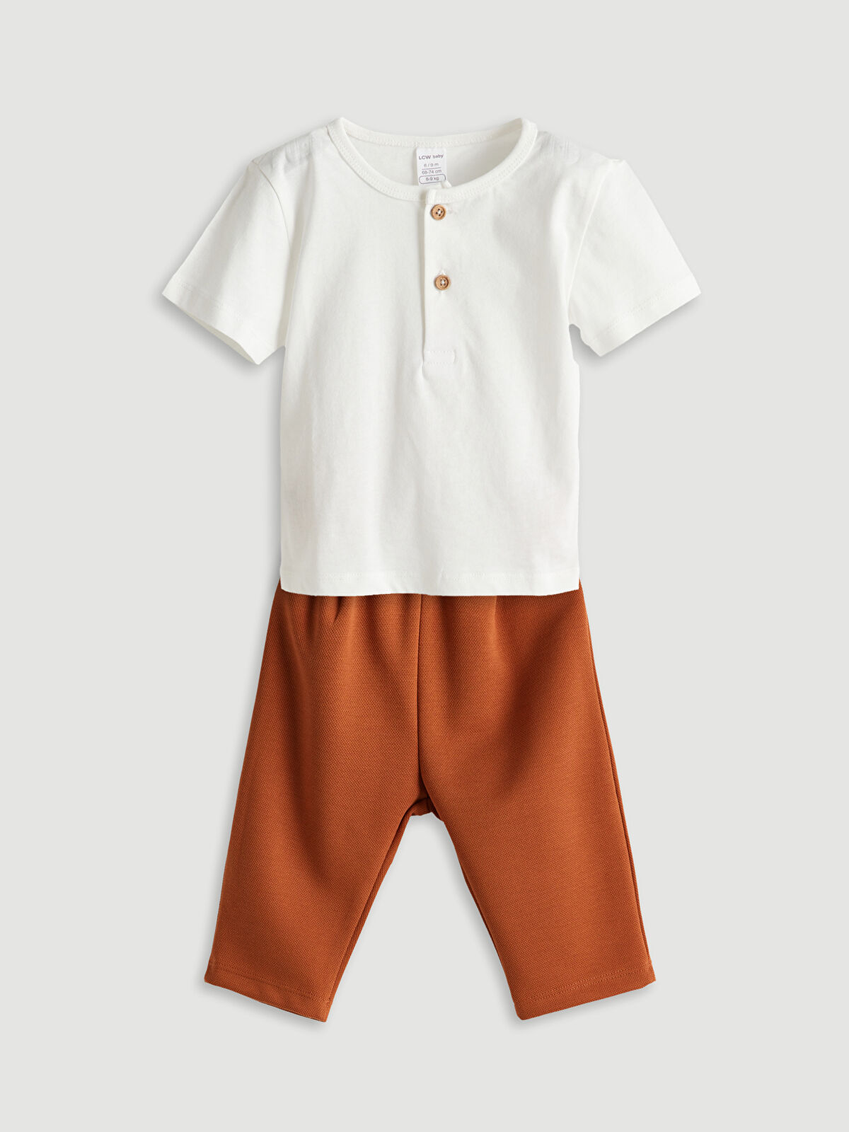 LCW Baby Cream Crew Neck Baby Boy T-Shirt and Pants Set