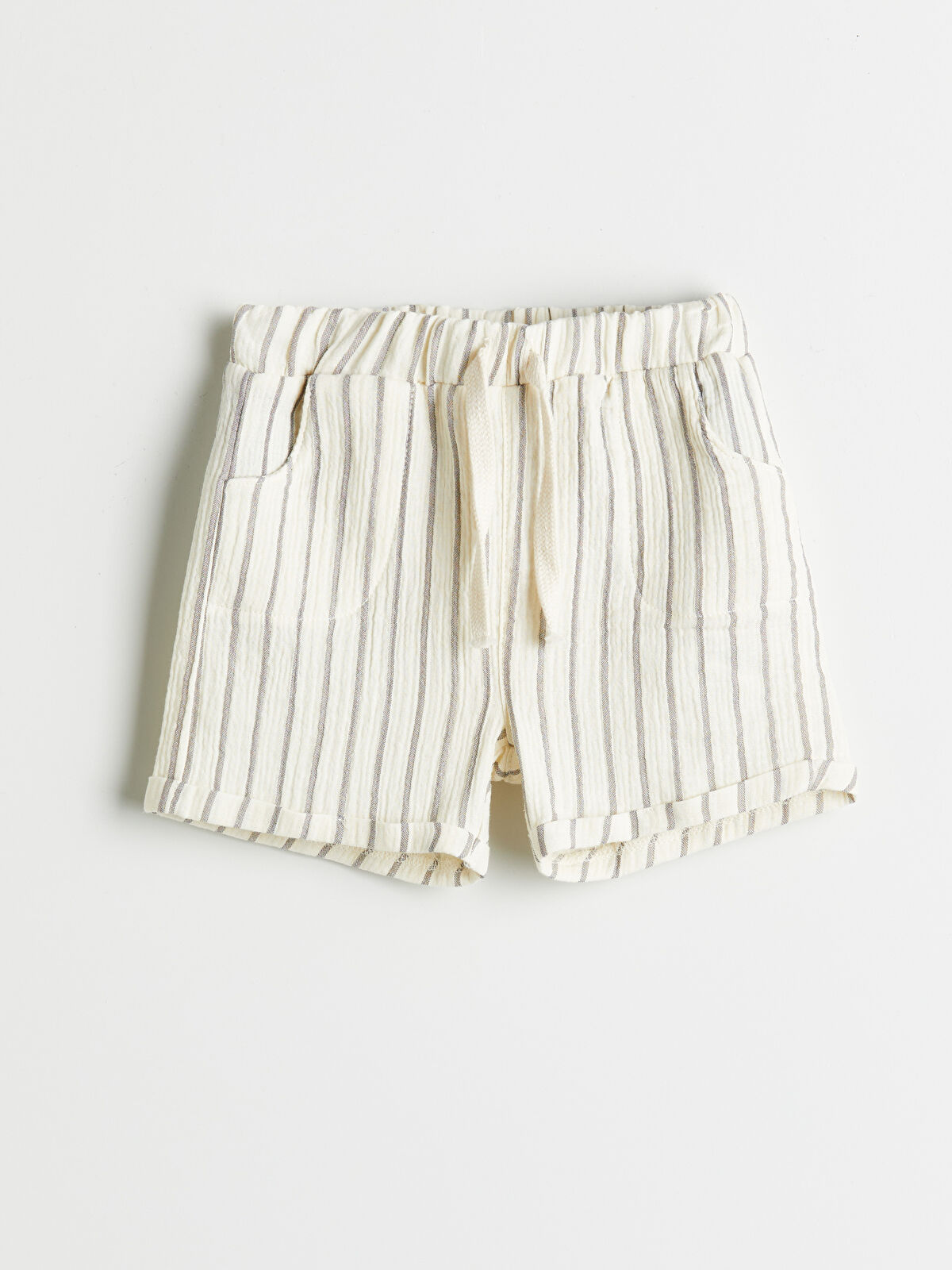 LCW Baby Cream Striped Elastic Waist Shorts for Boys