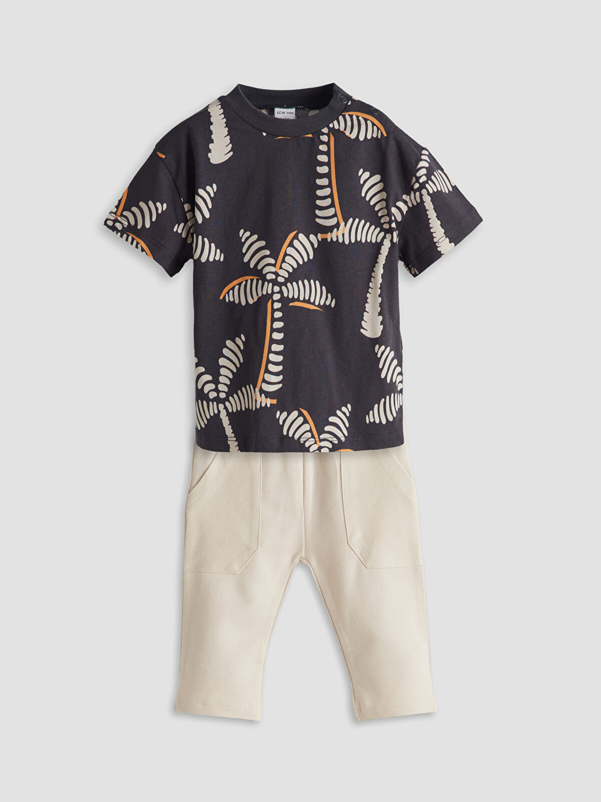 LCW Baby Gray Printed Boys Shirt and Pants Set