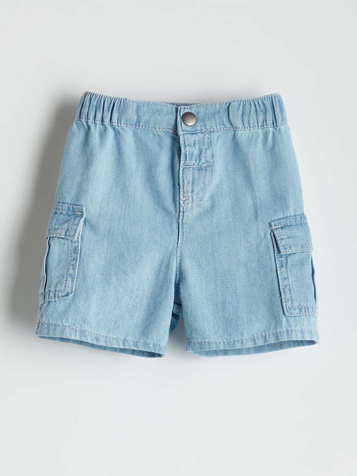 These adorable boys’ denim shorts are crafted from 100% cotton, ensuring comfort and breathability for your little one. Featuring an elastic waistband for a snug fit and convenient button closure, they are designed for easy wear. With stylish cargo pockets on the sides, these shorts combine practicality with a trendy look, making them perfect for any playful adventure. Dress your baby boy in these loose-fit denim shorts for a cool, casual outfit that is both stylish and functional.