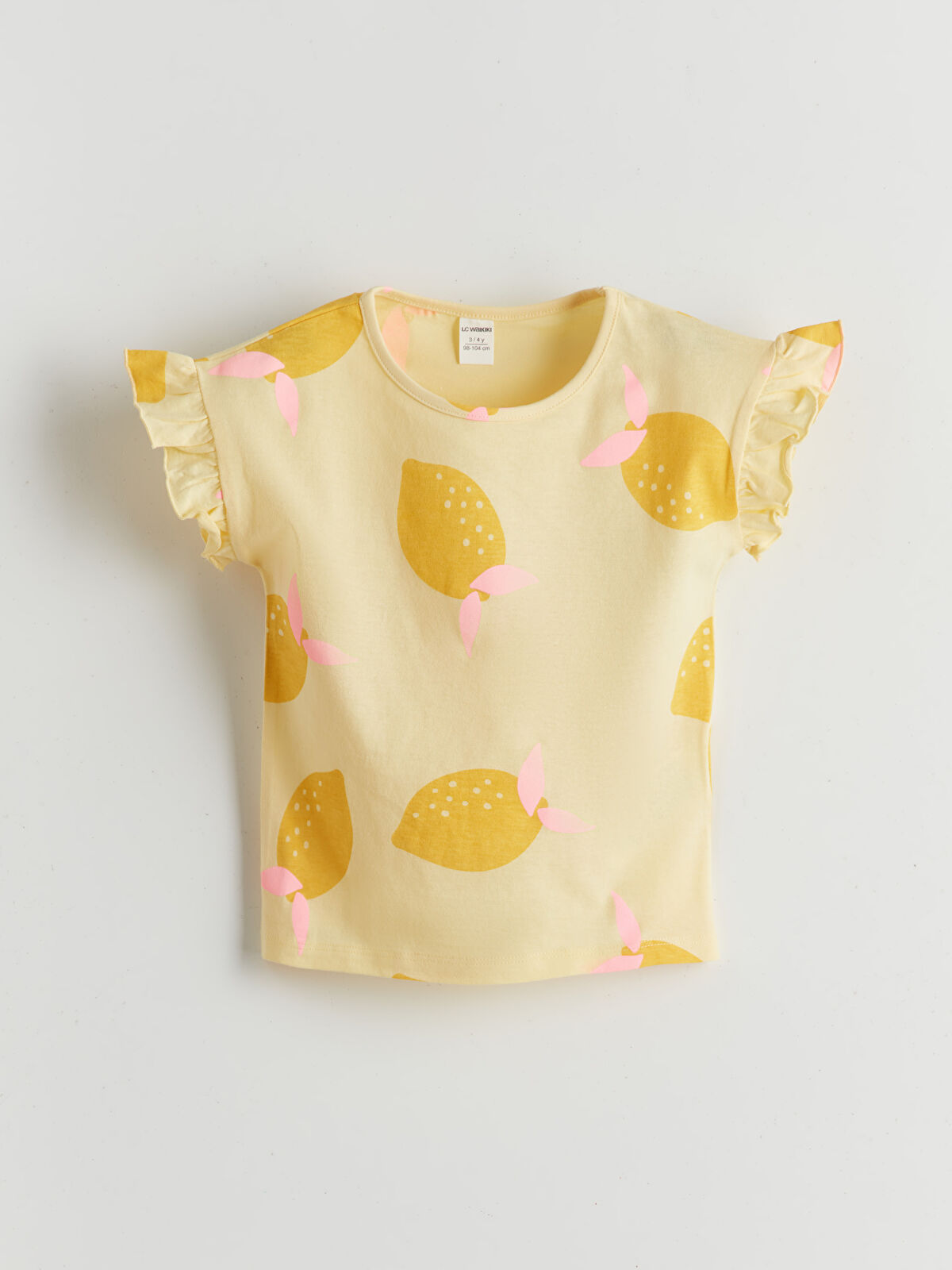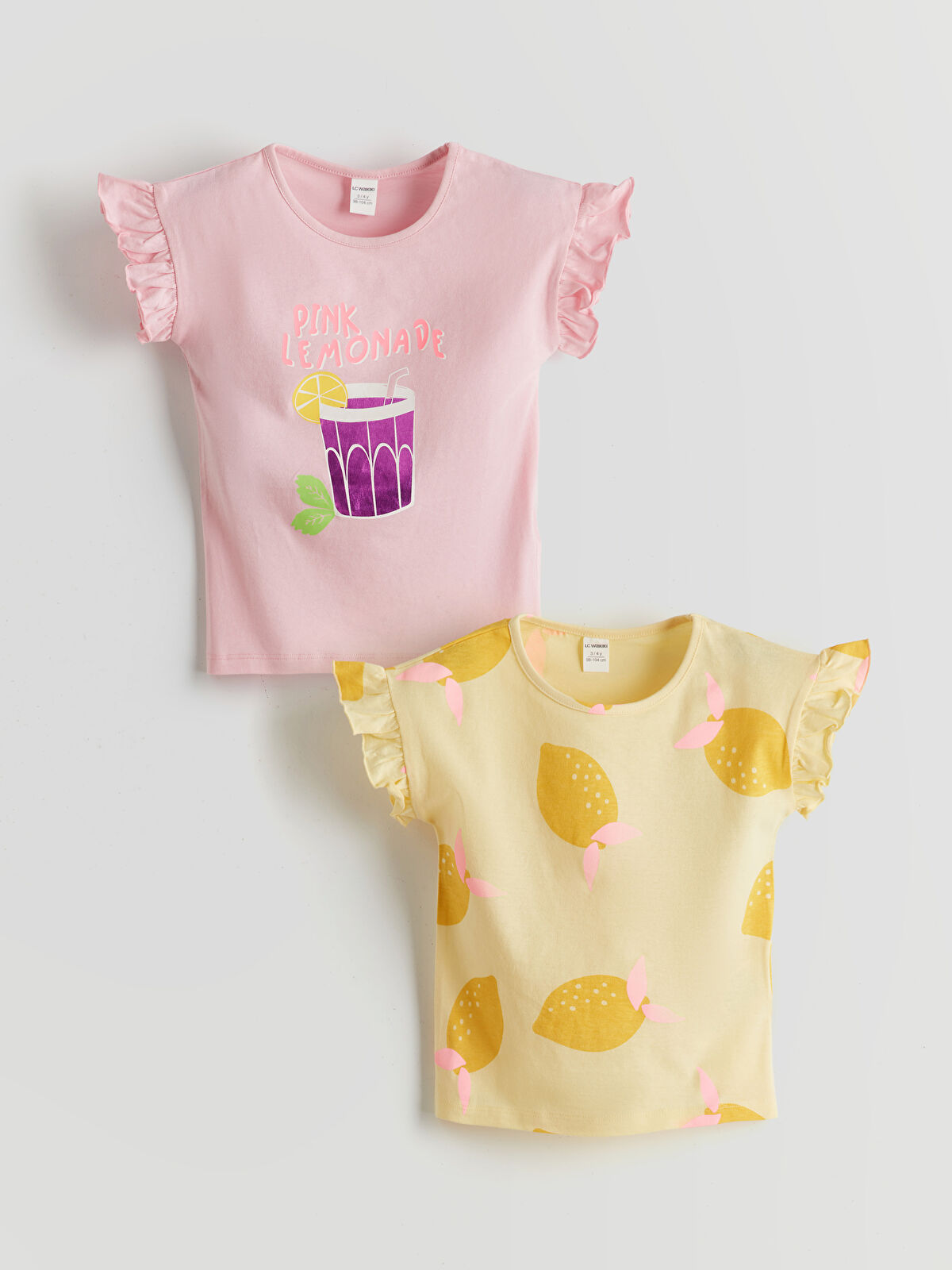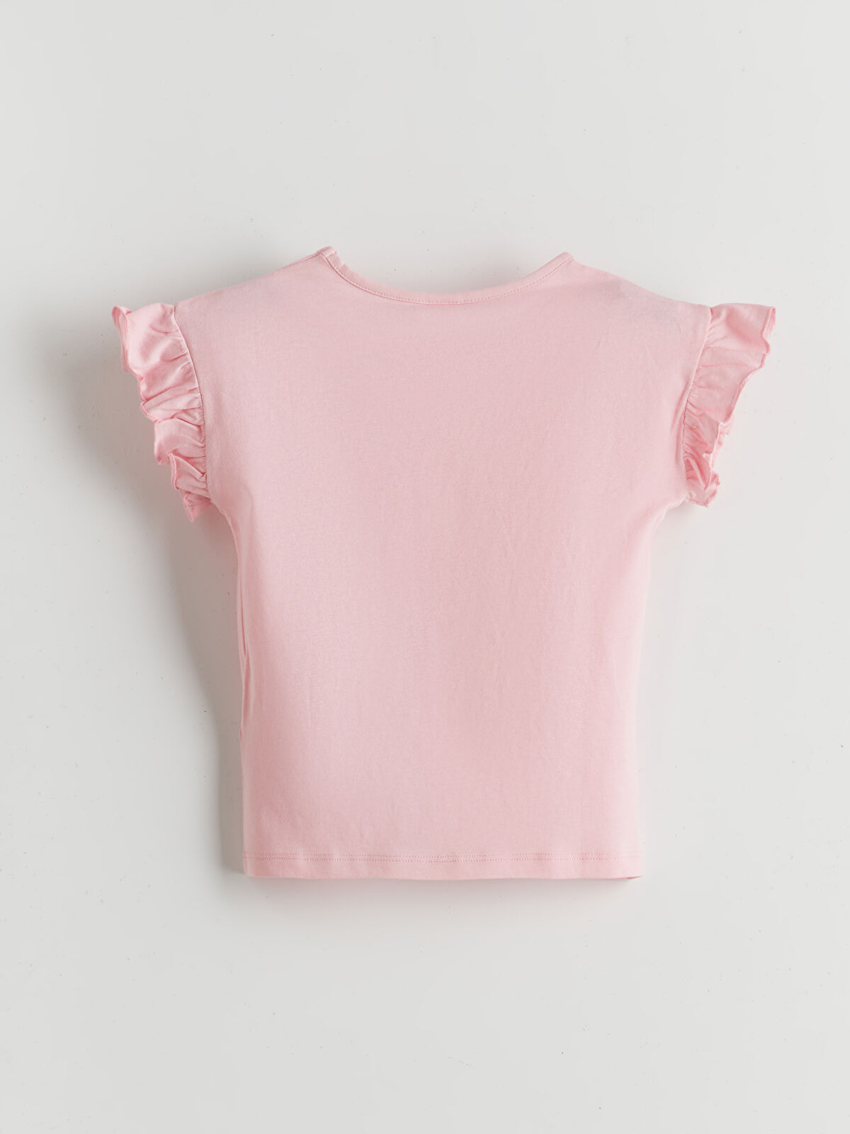 LCW Baby Pink Crew Neck Printed Girls T-Shirt Set