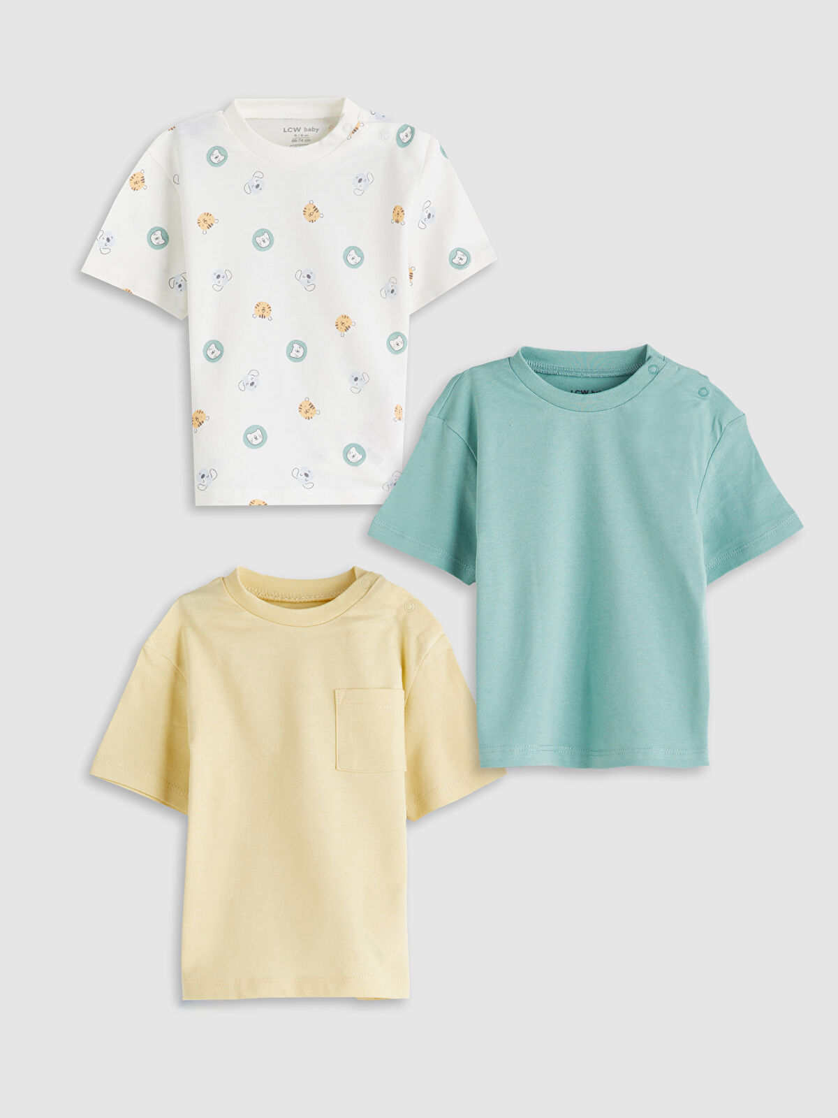 Dress your little one in comfort and style with this delightful set of three short sleeve t-shirts, crafted from 100% soft cotton. Featuring a playful design with pockets and convenient snap closures on the shoulders, these t-shirts are perfect for easy dressing. The set includes cheerful colors of light yellow, cream, and soft green, making it a versatile addition to your baby’s wardrobe. Ideal for everyday wear, these t-shirts ensure your baby stays cool and comfortable while looking adorable.