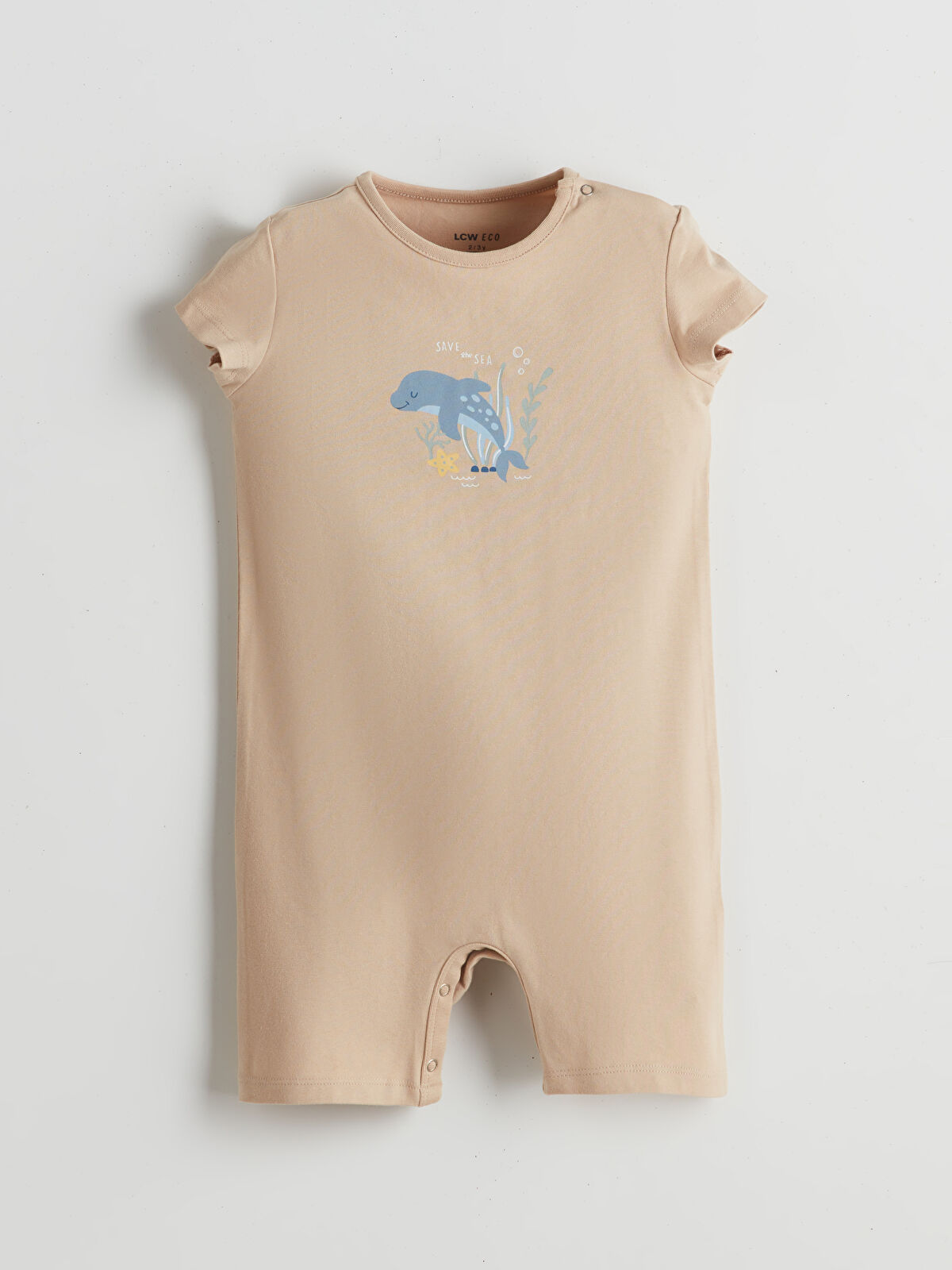 LCW ECO Beige Printed Short Sleeve Baby Boy Romper