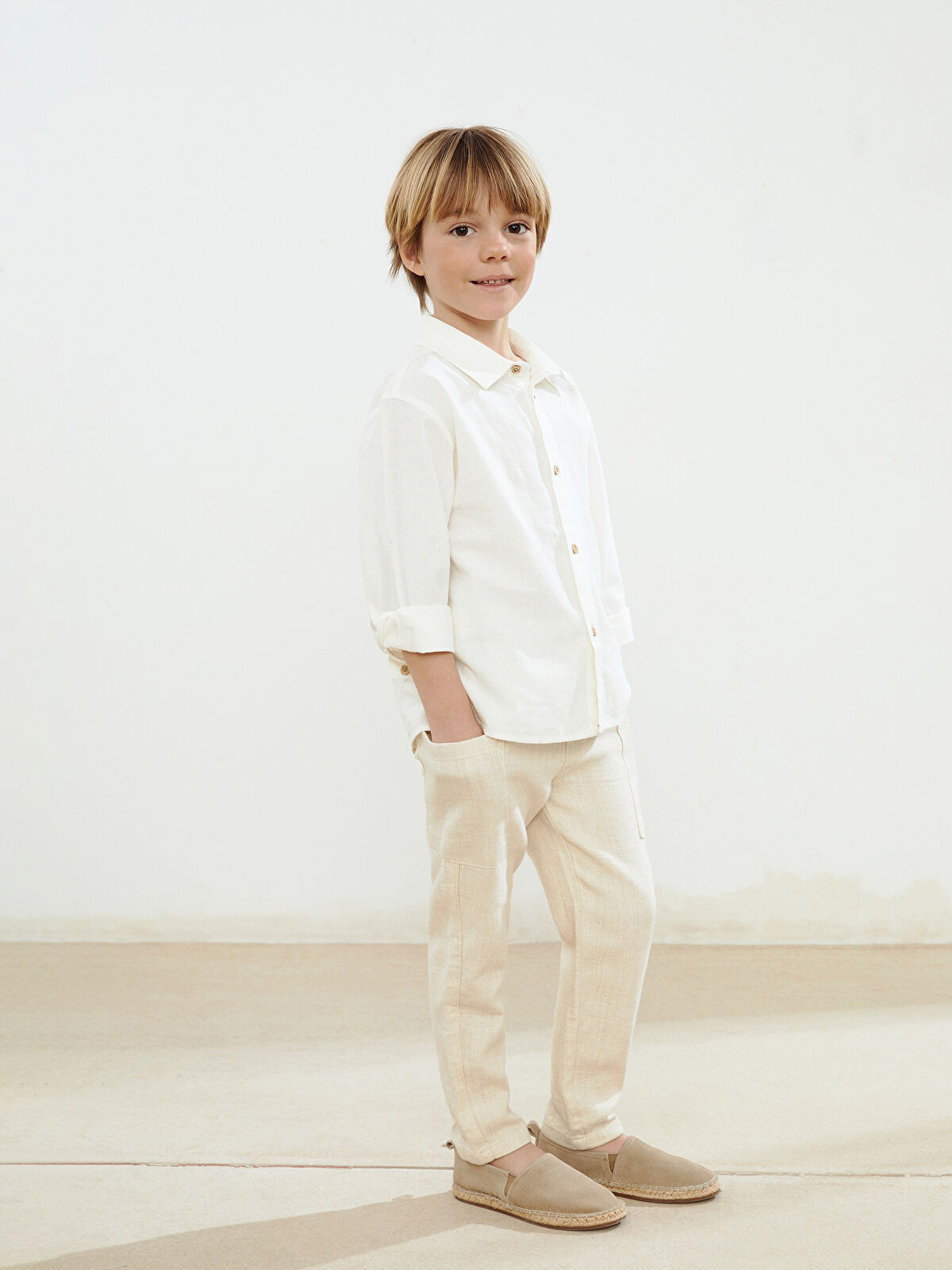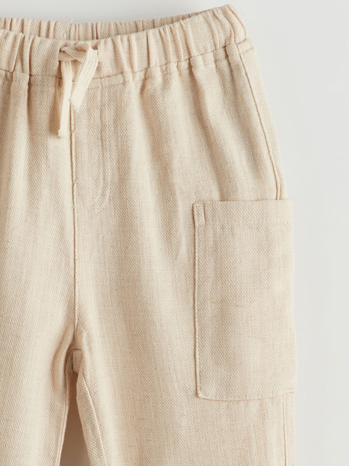 LCW Kids Beige Elastic Waist Linen Pants for Boys