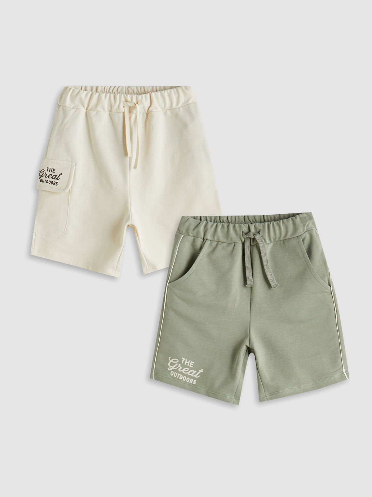 LCW Kids Beige Elastic Waist Printed Boys’ Shorts – Set of 2