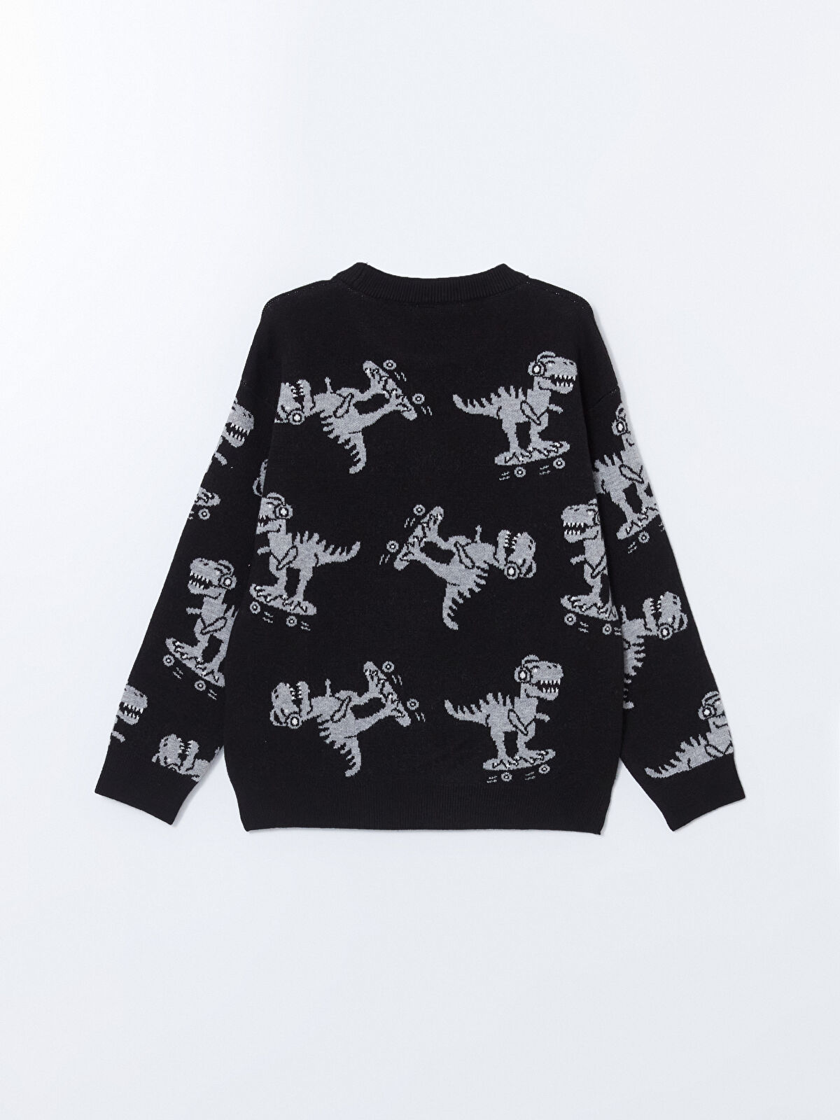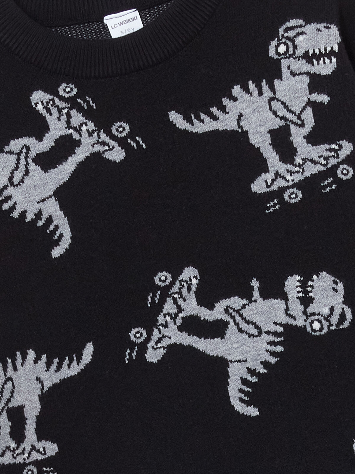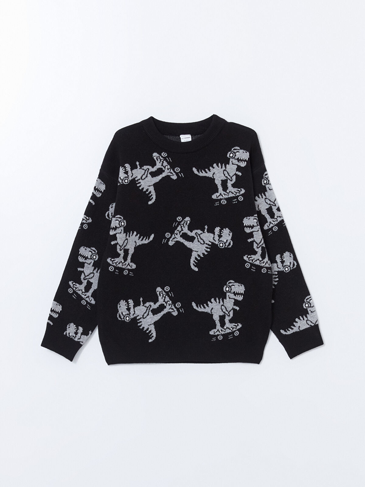 LCW Kids Black Printed Crew Neck Sweater for Boys